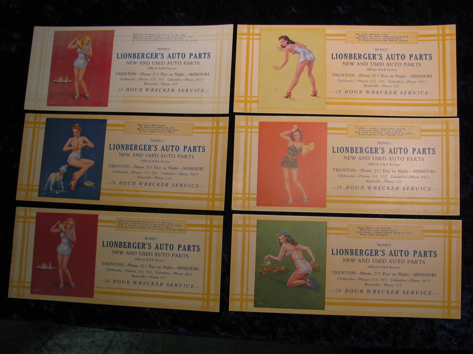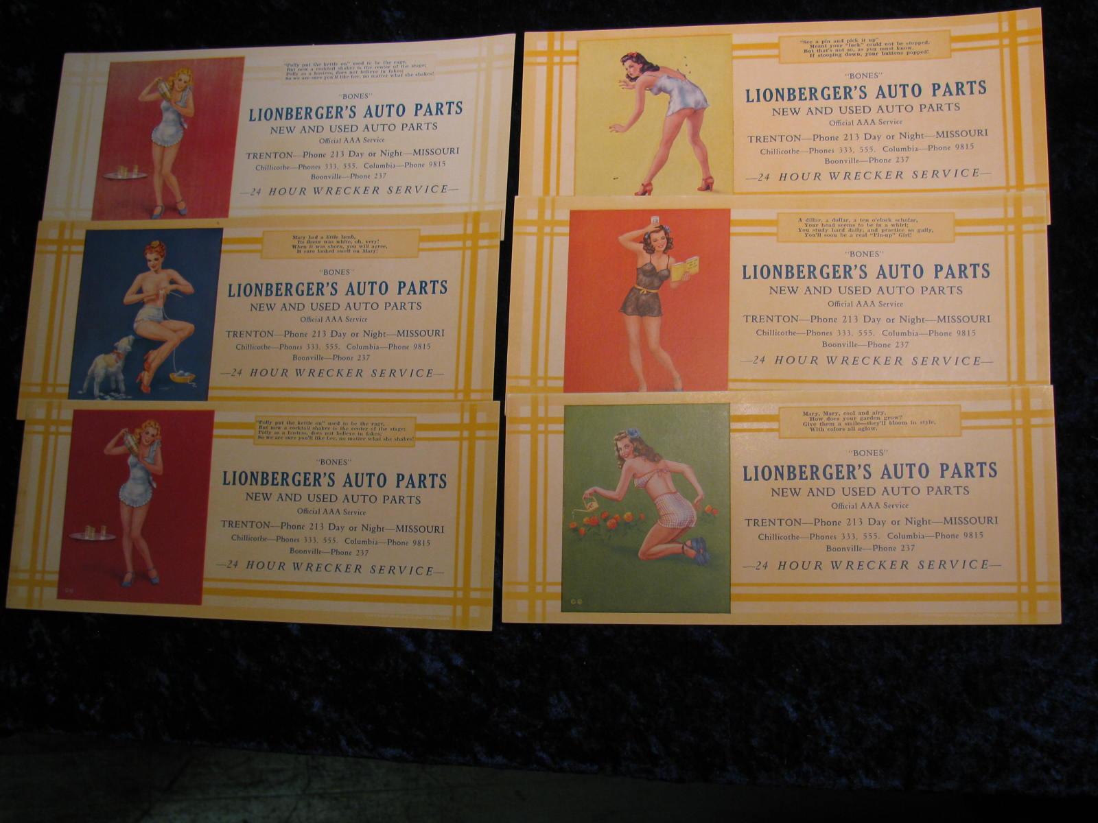 2214. Set of 6-Lionberger's Auto Parts Ink Blotters. Chillicothe, Columbus, Boonville Missouri.