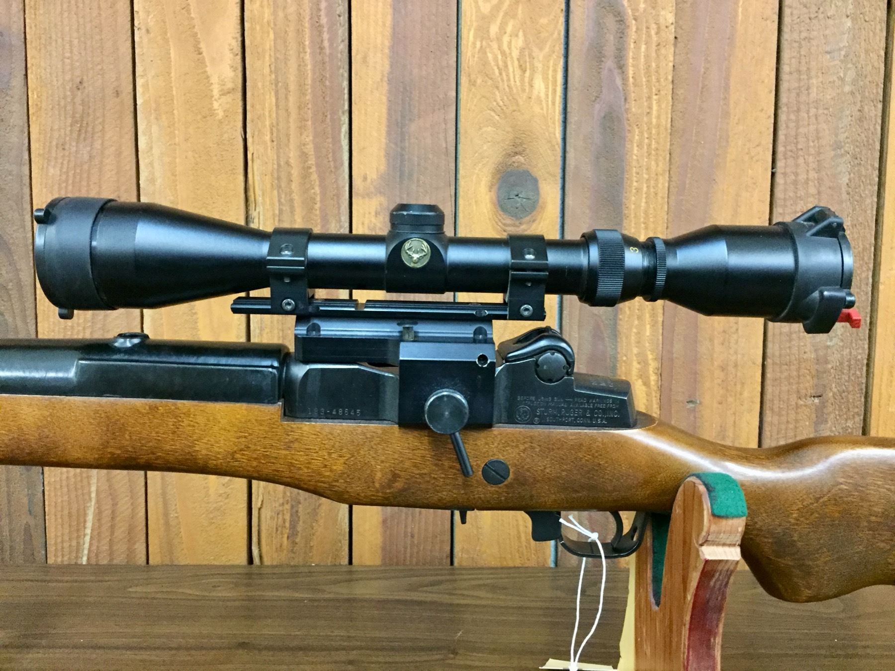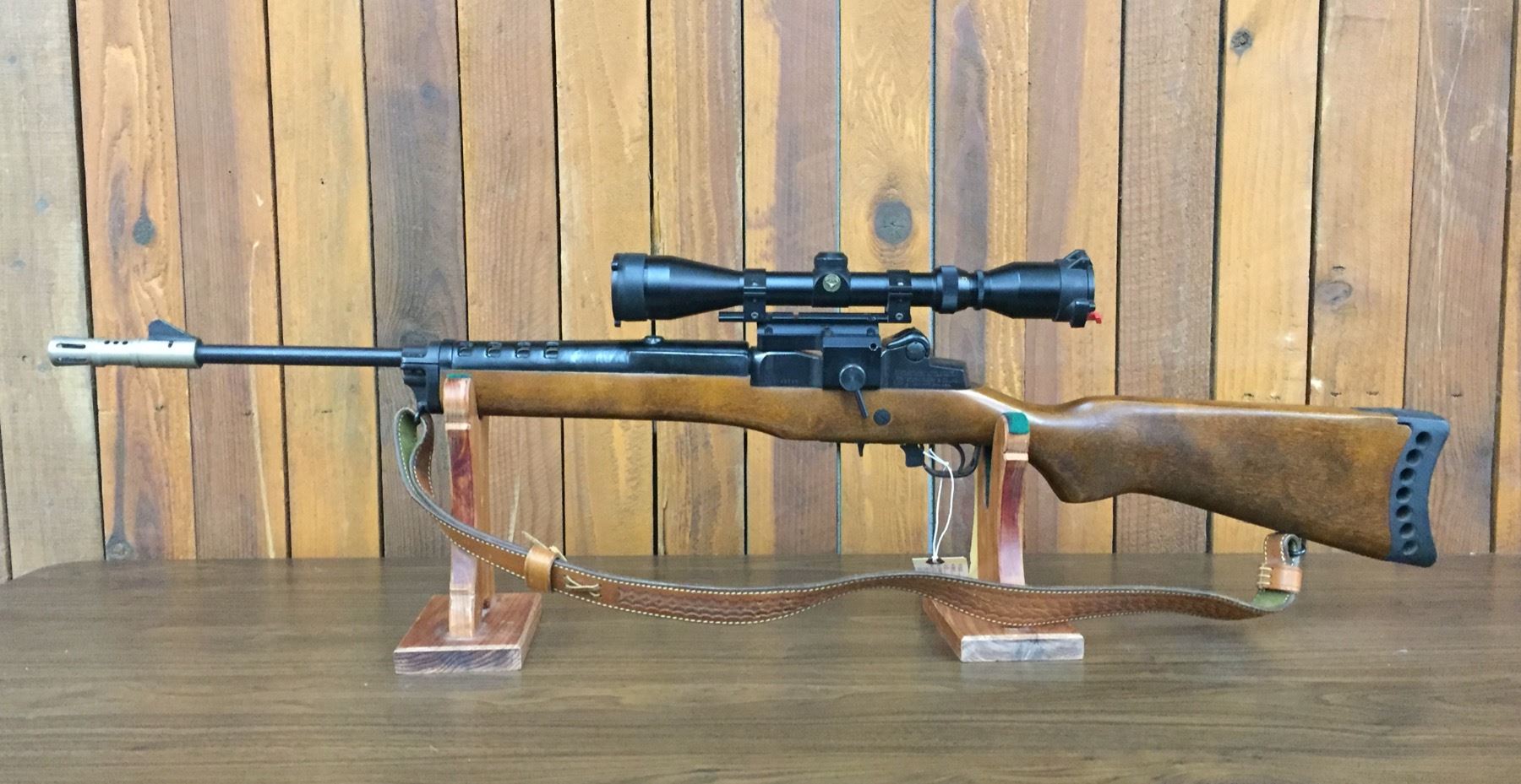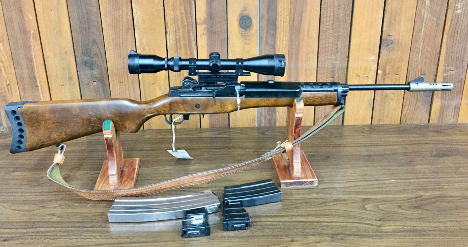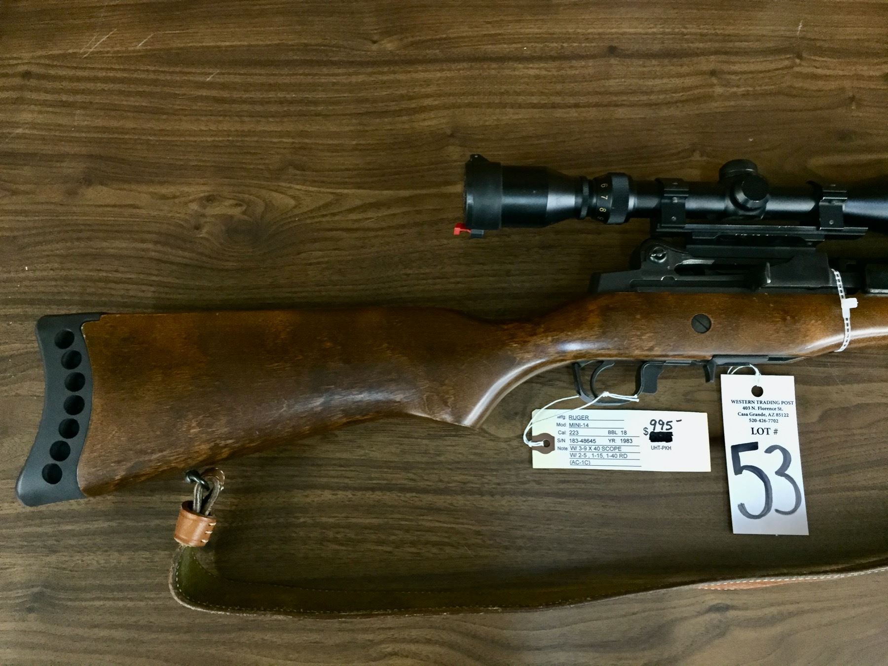 Description: Presented for sale in this lot is an excellent Ruger Mini 14 in a .223 caliber with a tooled leather shoulder strap and Simmons “Whitetail” scope with Butler Creek Corp. Patent scope protectors. It is in like new condition. Comes with 4 used magazines. Maker: Ruger. Approx. Age: 1983. Serial No. 183-48645. Size: Barrel measures 18 inches long. Condition: Very good to excellent for its age, minor wear expected. Please look closely at the pictures - they are an important part of our description. Shipping: There will be a $15 handling, packaging fee for shipping this lot. The actual cost of postage will be added on top of that. *****This firearm requires an FFL Transfer*****