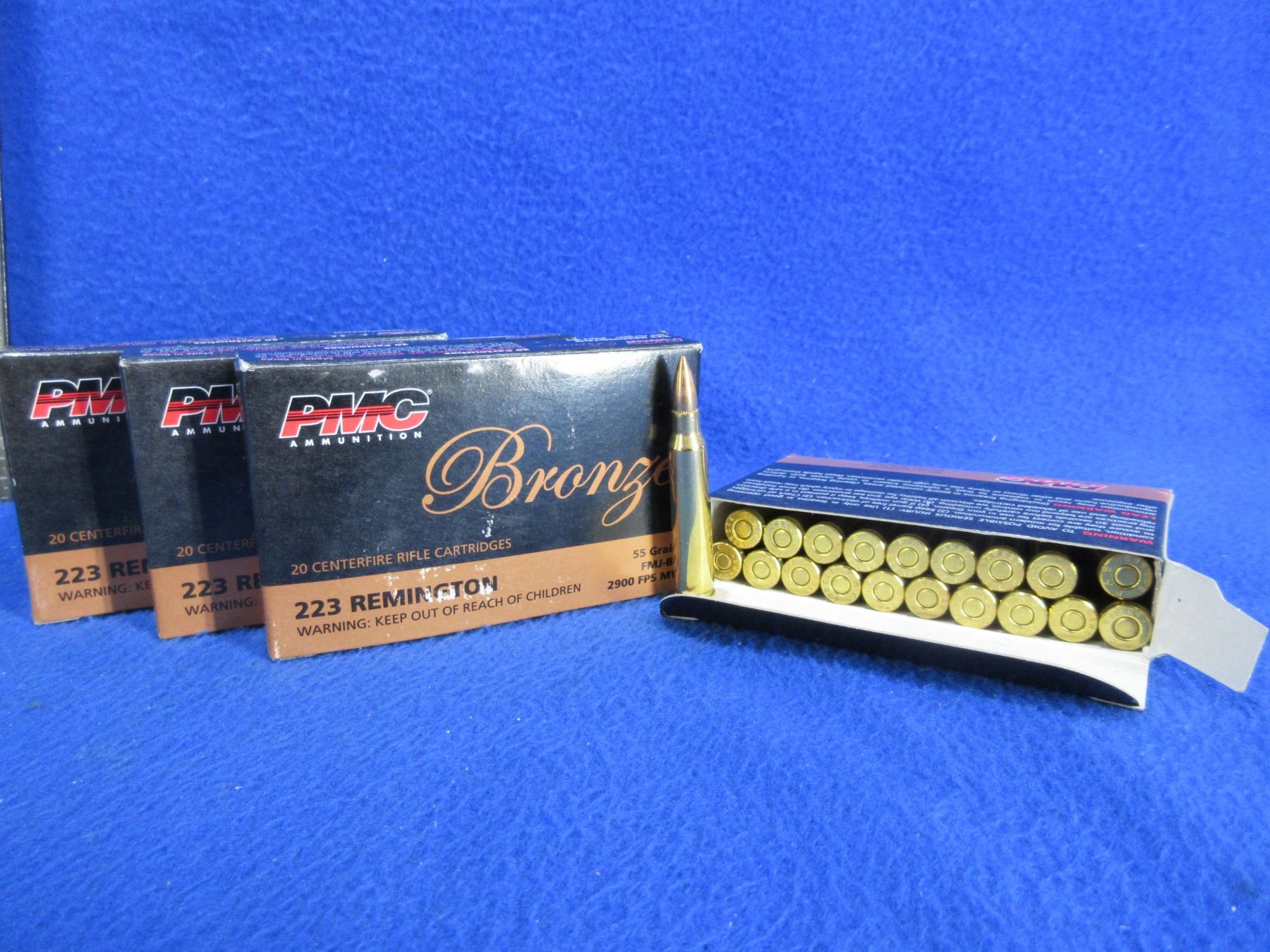 223 Rem. 55gr FMJ BT PMC Bronze Cartridges - 4 Boxes of 20 - PICK UP ONLY