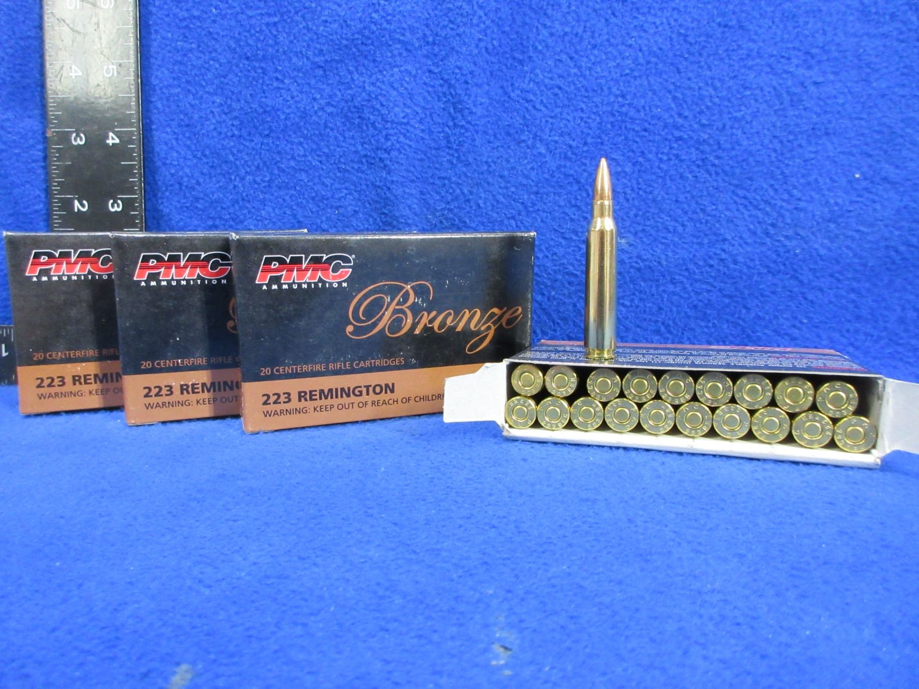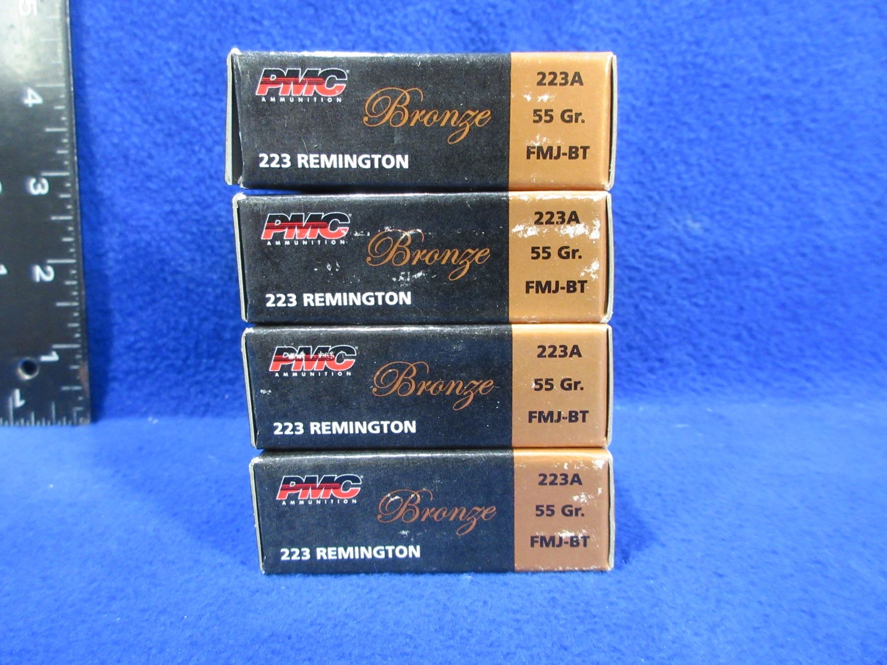 223 Rem. 55gr FMJ BT PMC Bronze Cartridges - 4 Boxes of 20 - PICK UP ONLY