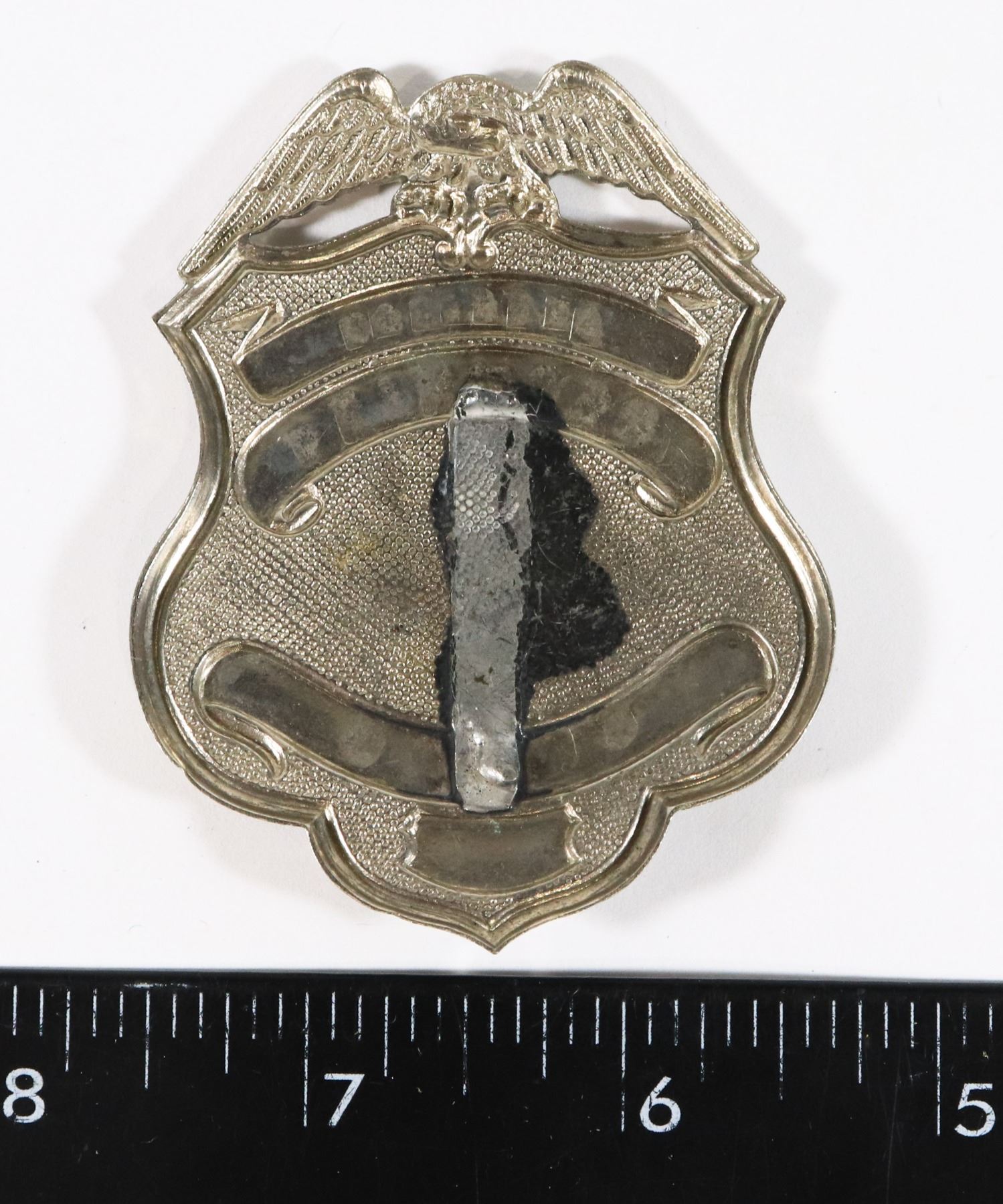 MISSING REVERSE PIN VINTAGE POLICE LAW ENFORCEMENT CAP BADGE INSIGNIA UNITED STATES OF AMERICA USA US