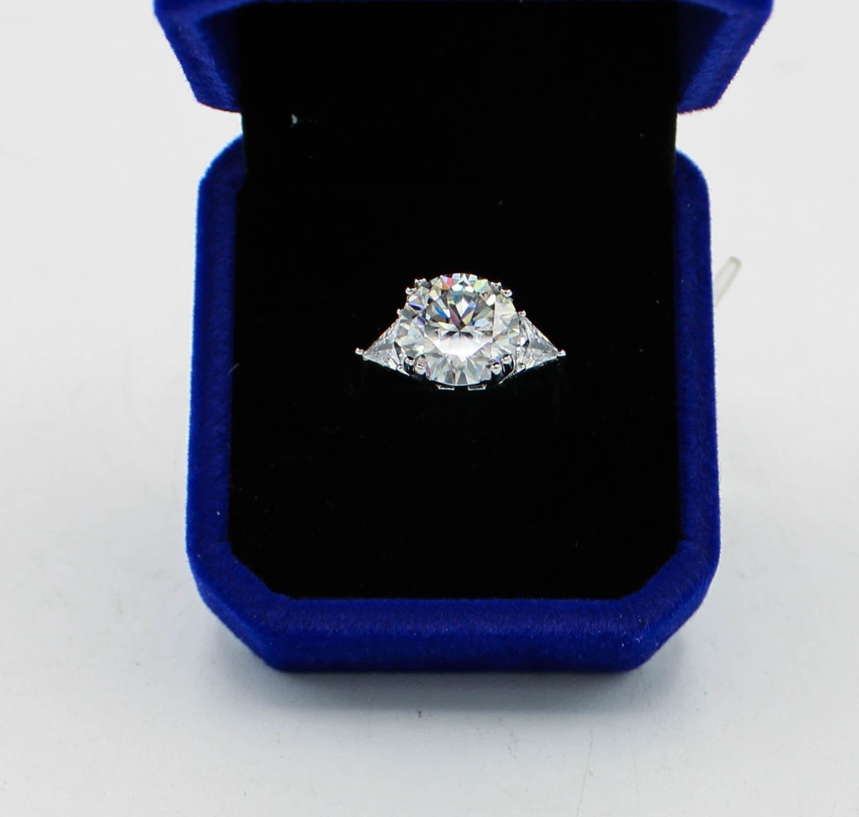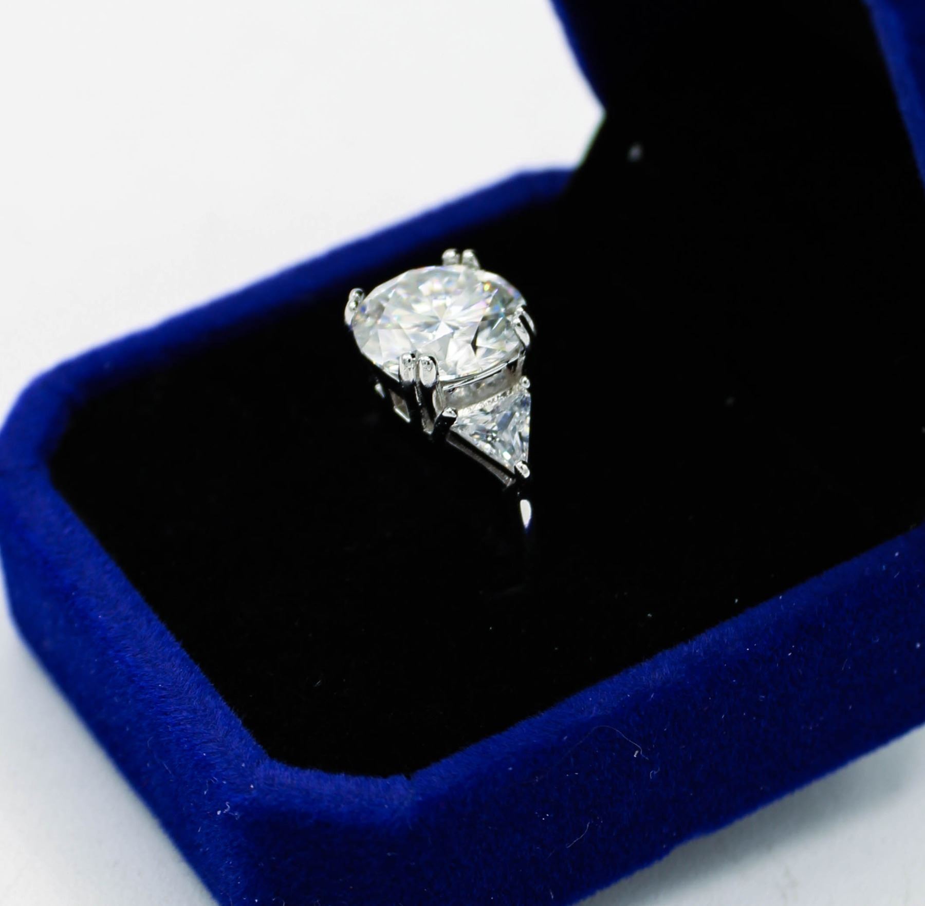 CUT MOISSANITE STONE VVS D COLOR SET IN 8 CLAW HEAD WITH 2 TRIANGULAR BRILLIANT CUT CZS SET IN 925 SILVER RING SIZE 6.5 RETAIL VALUE $1,425.00 **ALL ITEMS MUST BE REMOVED BY 5PM SATURDAY, MARCH 1ST 2025. ALL REMAINING ITEMS WILL BE SUBJECT TO A $6.00 PER DAY STORAGE CHARGE. ANY ITEMS REMAINING AFTER MONDAY, MARCH 17TH 2025 WILL BE CONSIDERED FORFEITED. NO REFUNDS WILL BE ISSUED FOR FORFEITED ITEMS. TO SCHEDULE A PICK UP APPOINTMENT CLICK HERE