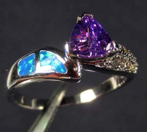 2241 - SILVER AMETHYST & PACIFIC BLUE OPAL RING - SZ. 9