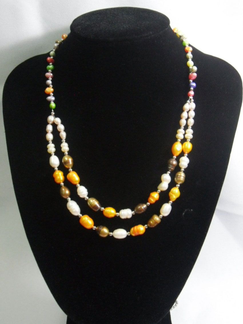 225CTW DOUBLE STRAND CHAMPAGNE AND WHITE PEARL WITH MUL **|**|** 225CTW DOUBLE STRAND CHAMPAGNE AND WHITE PEARL WITH MULTICOLOR ; MSRP: $100