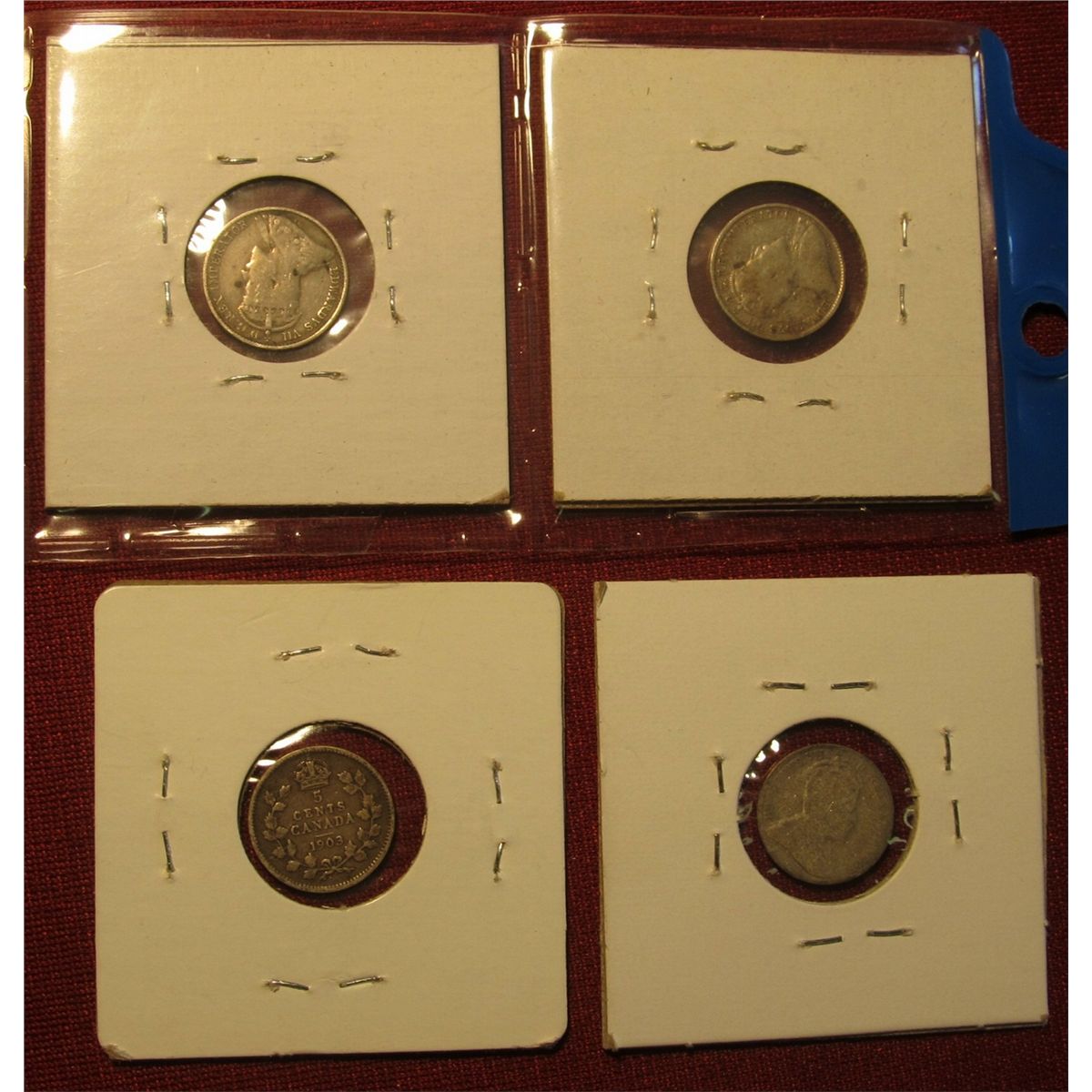 226. 1902, 03, 03h, & 04 Canada Five Cent Silvers. G-VG.