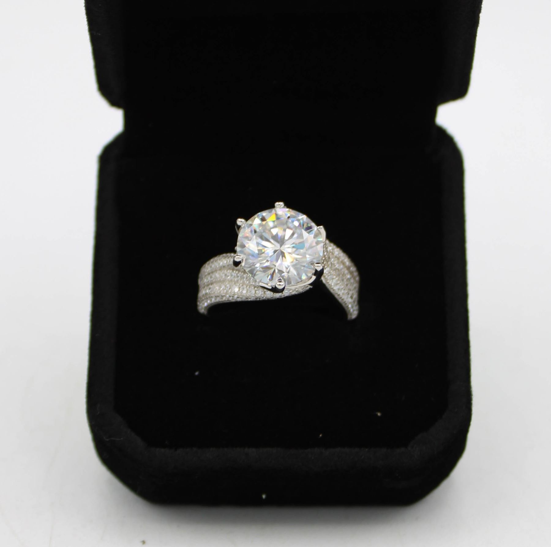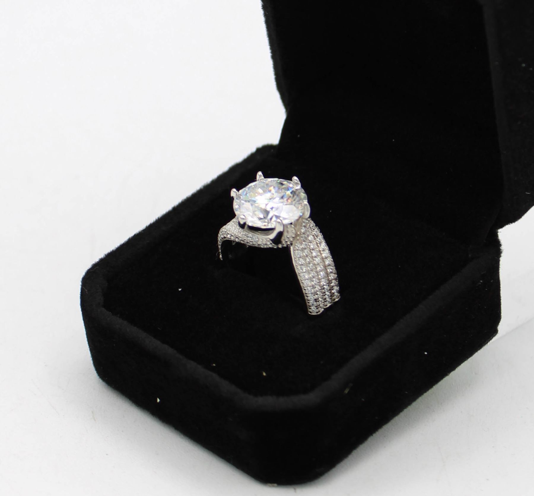 MOISSANITE STONE VVS D COLOR SET WITH 130 ROUND BRILLIANT CUT CZ’S SET IN 925 SILVER RING SIZE 7 RETAIL VALUE $1,475.00 **ALL ITEMS MUST BE REMOVED BY 5PM SATURDAY, MARCH 8TH 2025. ALL REMAINING ITEMS WILL BE SUBJECT TO A $6.00 PER DAY STORAGE CHARGE. ANY ITEMS REMAINING AFTER MONDAY, MARCH 24TH 2025 WILL BE CONSIDERED FORFEITED. NO REFUNDS WILL BE ISSUED FOR FORFEITED ITEMS. TO SCHEDULE A PICK UP APPOINTMENT CLICK HERE