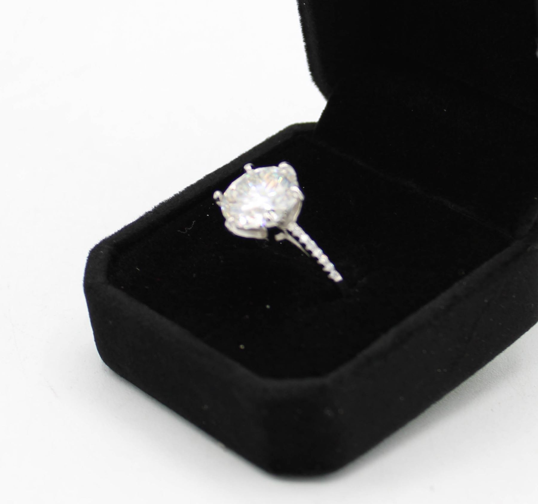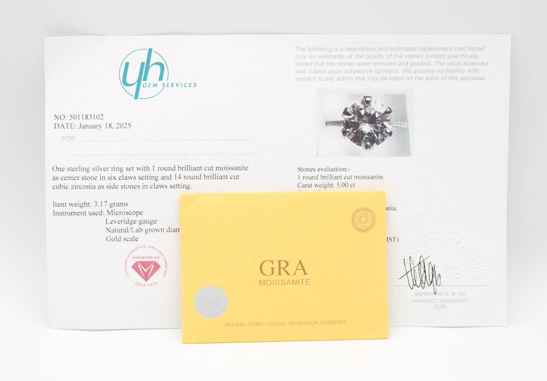 MOISSANITE STONE VVS D COLOR SET IN CENTER WITH 14 ROUND BRILLIANT CUT CUBIC ZIRCONIA AND SET IN 925 SILVER RING SIZE 7 RETAIL VALUE $1,450.00 **ALL ITEMS MUST BE REMOVED BY 5PM SATURDAY, MARCH 8TH 2025. ALL REMAINING ITEMS WILL BE SUBJECT TO A $6.00 PER DAY STORAGE CHARGE. ANY ITEMS REMAINING AFTER MONDAY, MARCH 24TH 2025 WILL BE CONSIDERED FORFEITED. NO REFUNDS WILL BE ISSUED FOR FORFEITED ITEMS. TO SCHEDULE A PICK UP APPOINTMENT CLICK HERE