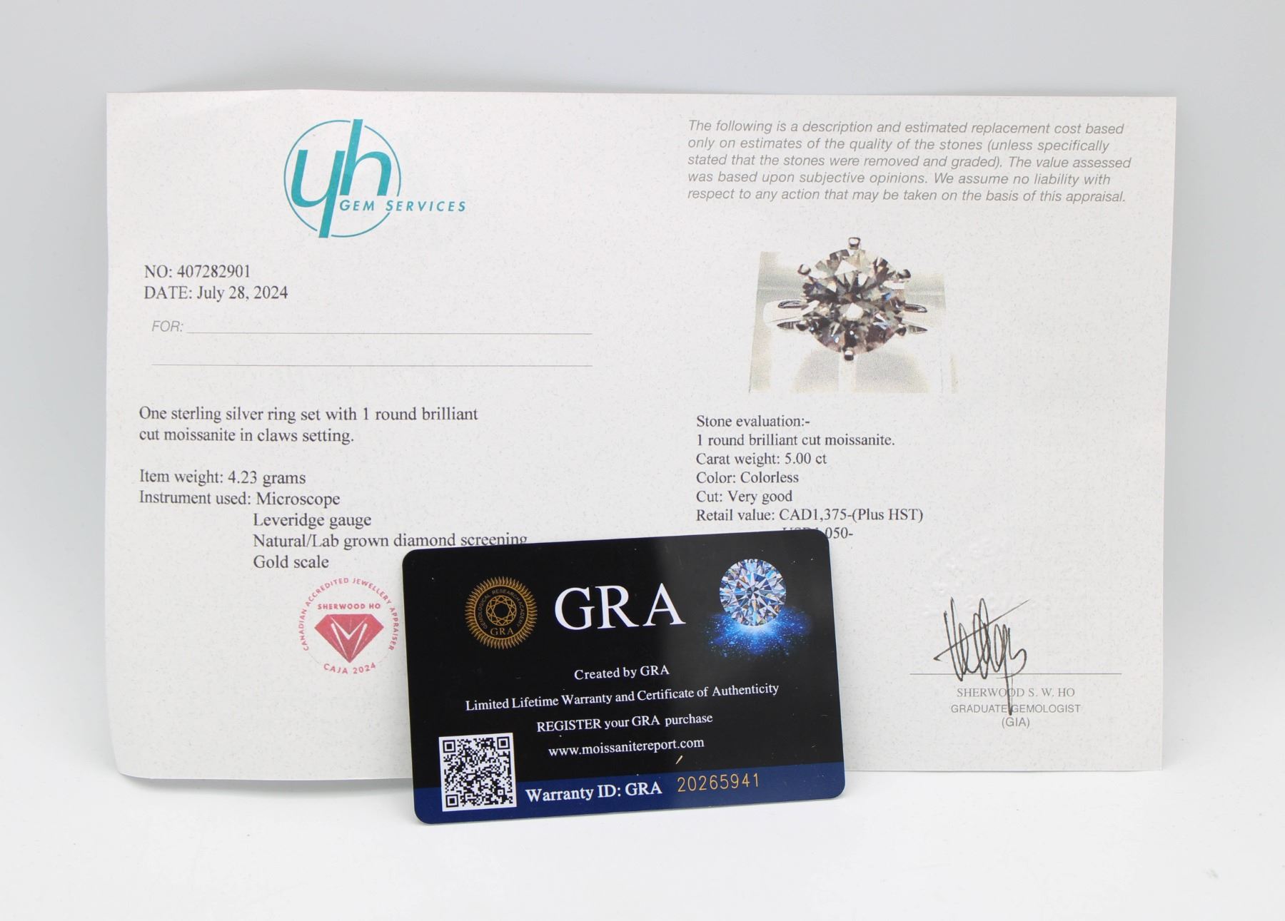 MOISSANITE STONE VVS D COLOR SET IN CENTER AND SET IN 925 SILVER RING SIZE 7 RETAIL VALUE $1,375.00 **ALL ITEMS MUST BE REMOVED BY 5PM SATURDAY, MARCH 8TH 2025. ALL REMAINING ITEMS WILL BE SUBJECT TO A $6.00 PER DAY STORAGE CHARGE. ANY ITEMS REMAINING AFTER MONDAY, MARCH 24TH 2025 WILL BE CONSIDERED FORFEITED. NO REFUNDS WILL BE ISSUED FOR FORFEITED ITEMS. TO SCHEDULE A PICK UP APPOINTMENT CLICK HERE