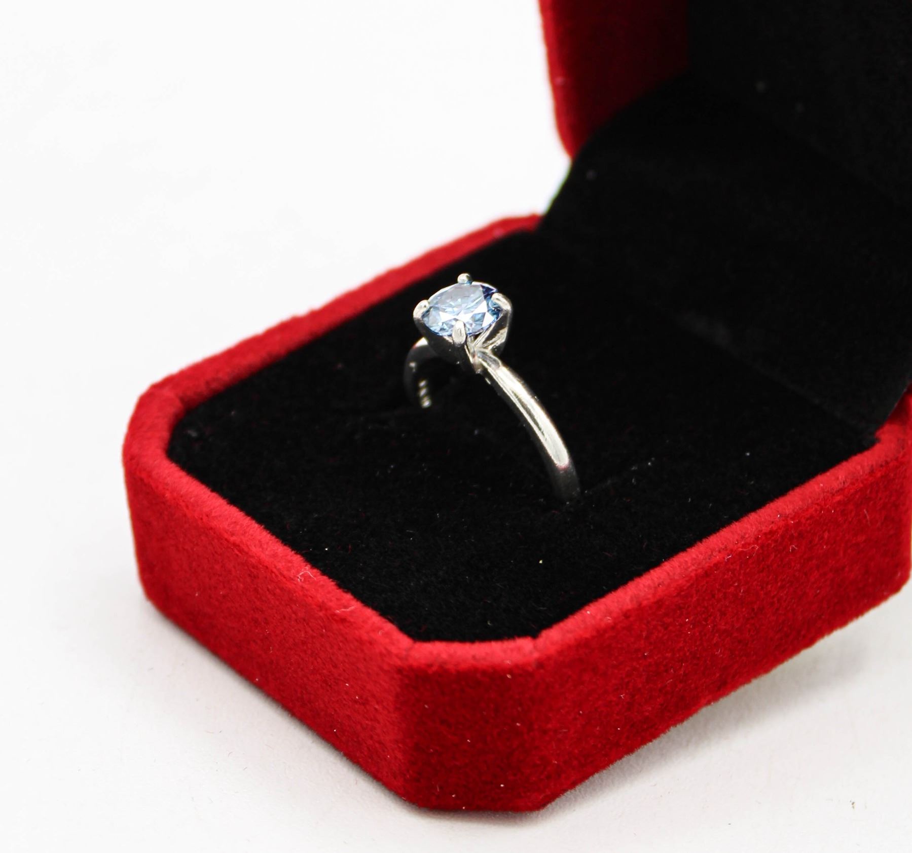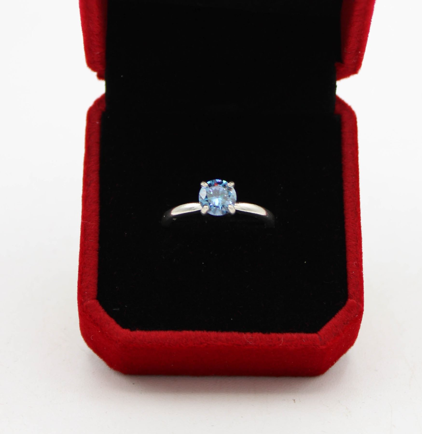 ROUND BRILLIANT CUT MOISSANITE STONE VVS VIBRANT BLUE SET IN 925 SILVER RING SIZE 7 **ALL ITEMS MUST BE REMOVED BY 5PM SATURDAY, MARCH 15TH 2025. ALL REMAINING ITEMS WILL BE SUBJECT TO A $6.00 PER DAY STORAGE CHARGE. ANY ITEMS REMAINING AFTER MONDAY, MARCH 31ST 2025 WILL BE CONSIDERED FORFEITED. NO REFUNDS WILL BE ISSUED FOR FORFEITED ITEMS. TO SCHEDULE A PICK UP APPOINTMENT CLICK HERE