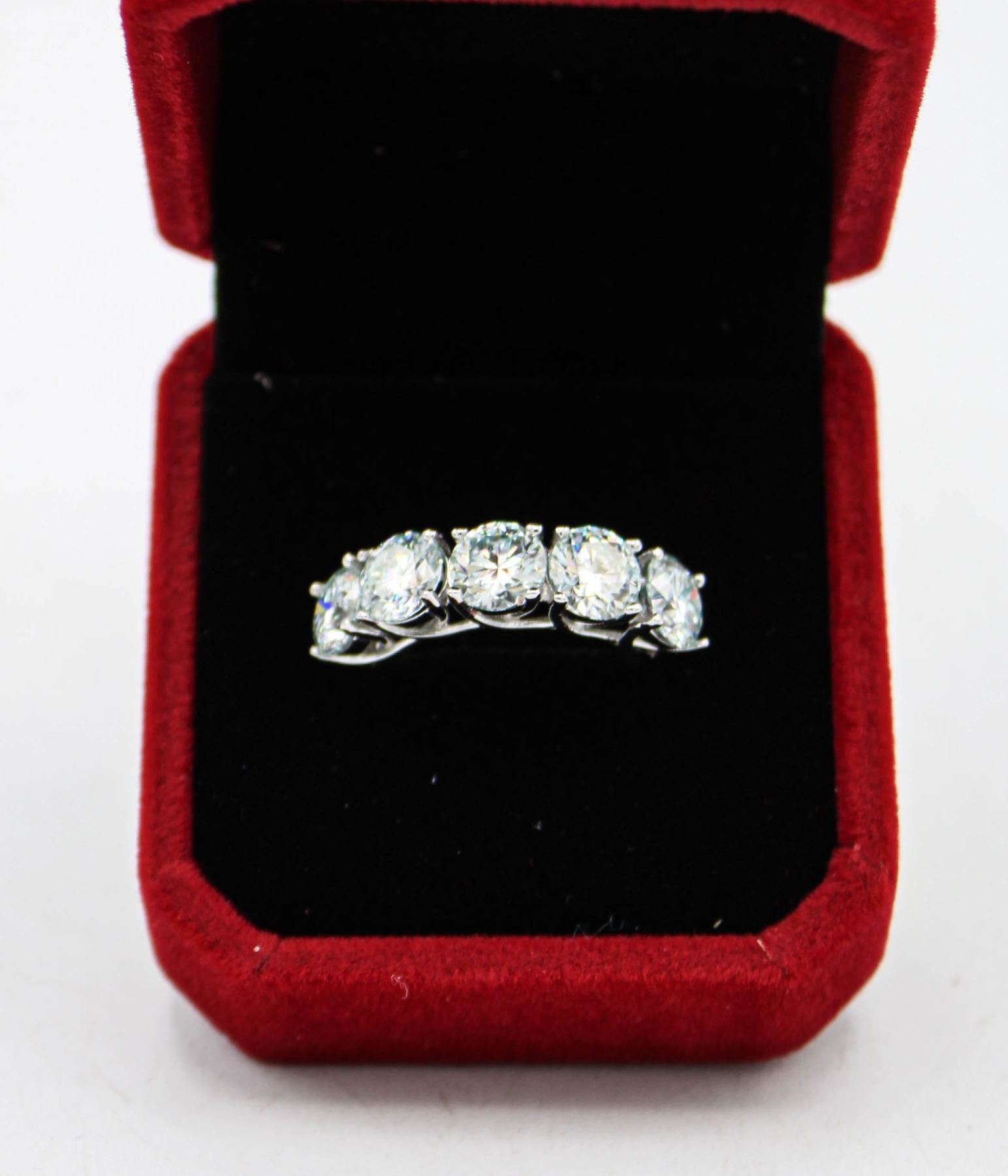 MOISSANITE STONES VVS D COLOR WITH THE 5 MOISSANITE STONES SET IN 925 SILVER RING SIZE 7 **ALL ITEMS MUST BE REMOVED BY 5PM SATURDAY, MARCH 15TH 2025. ALL REMAINING ITEMS WILL BE SUBJECT TO A $6.00 PER DAY STORAGE CHARGE. ANY ITEMS REMAINING AFTER MONDAY, MARCH 31ST 2025 WILL BE CONSIDERED FORFEITED. NO REFUNDS WILL BE ISSUED FOR FORFEITED ITEMS. TO SCHEDULE A PICK UP APPOINTMENT CLICK HERE