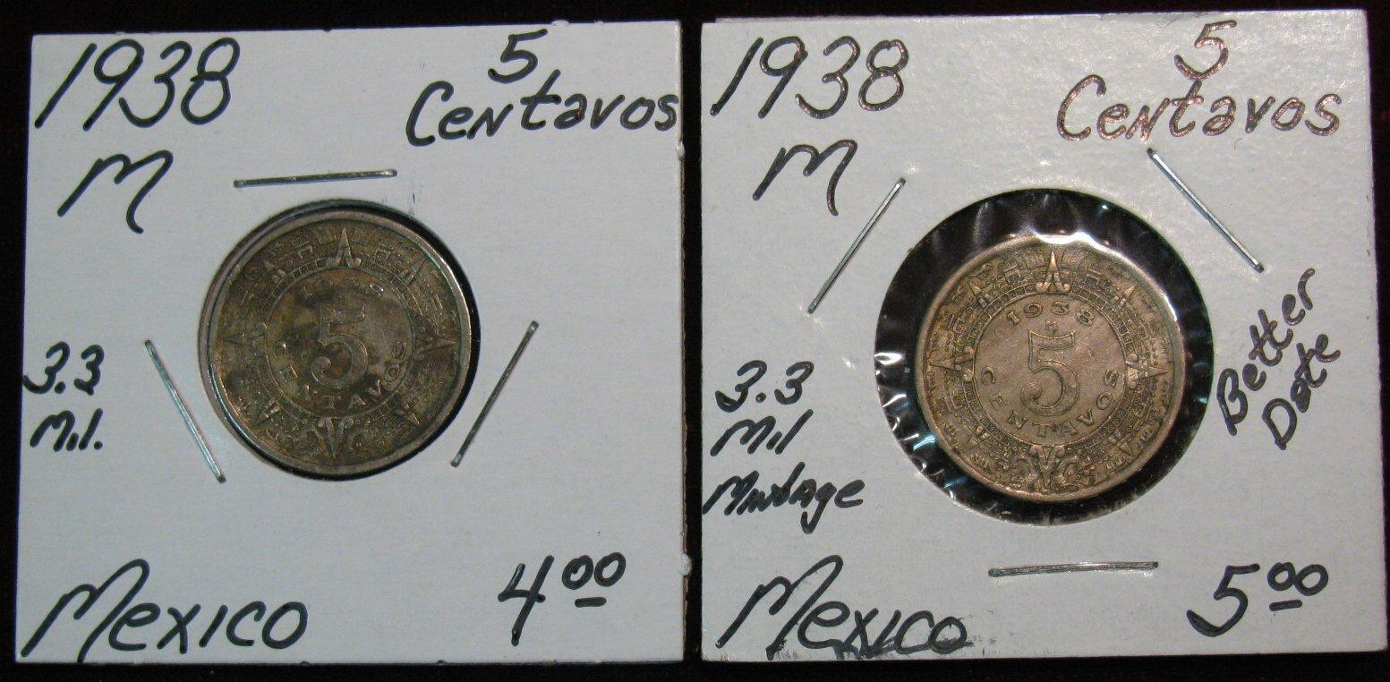 227. Mexico (2) 1938M 5-Centavos.