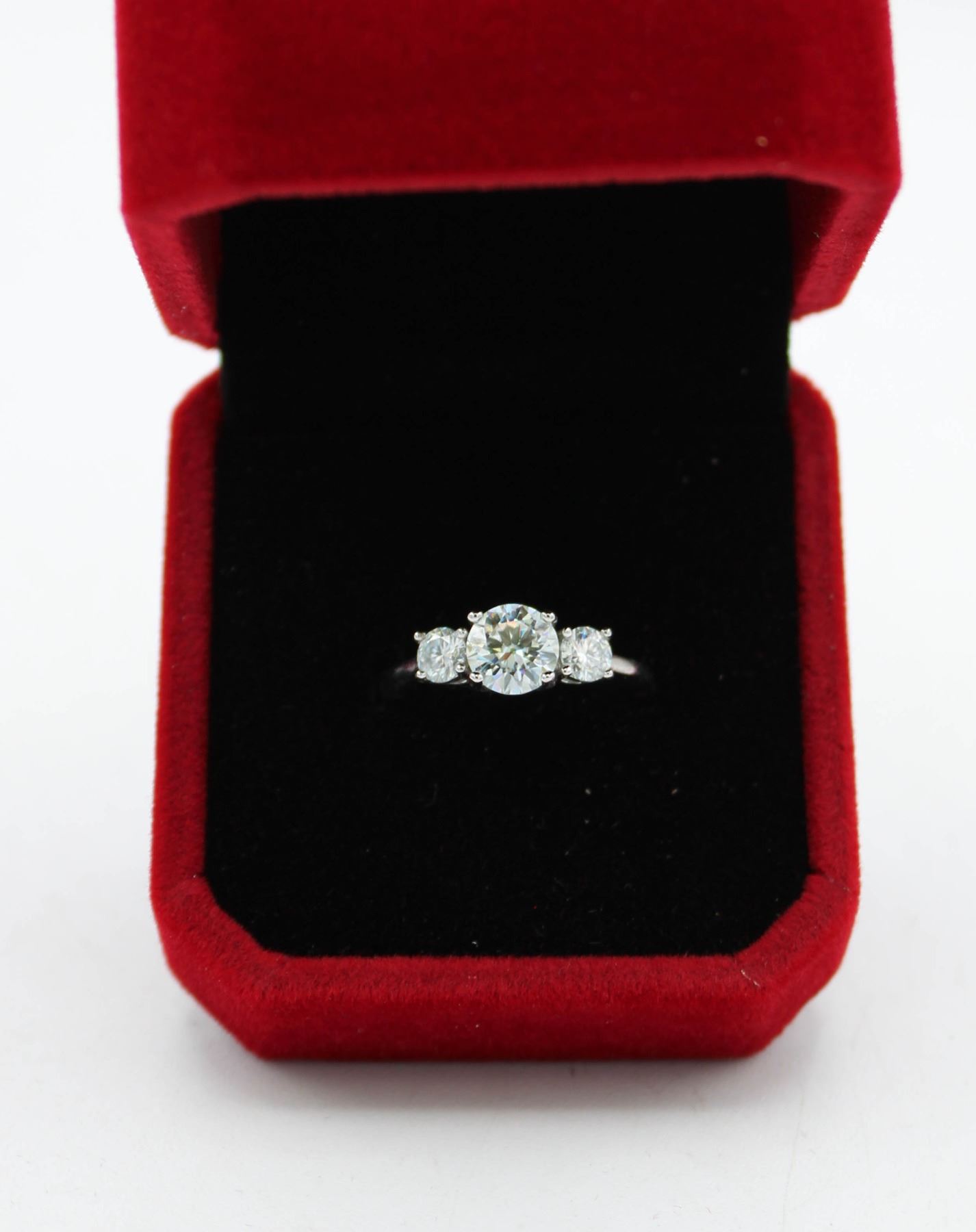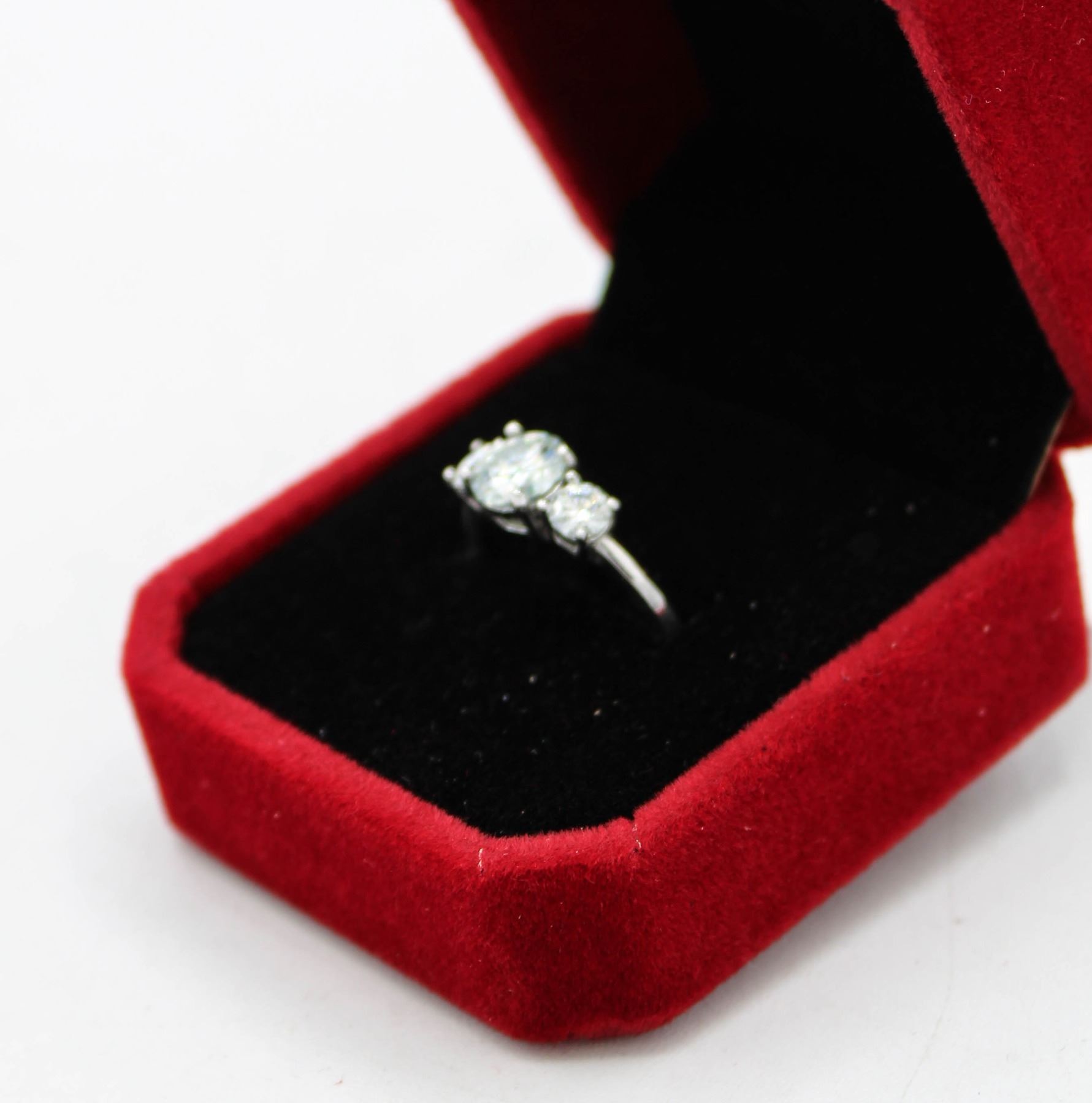 MOISSANITE STONE VVS D COLOR SET WITH 0.25 CT ROUND BRILLIANT CUT MOISSANITE SET ON EITHER SIDE SET IN 925 SILVER RING SIZE 6.0 **ALL ITEMS MUST BE REMOVED BY 5PM SATURDAY, MARCH 8TH 2025. ALL REMAINING ITEMS WILL BE SUBJECT TO A $6.00 PER DAY STORAGE CHARGE. ANY ITEMS REMAINING AFTER MONDAY, MARCH 24TH 2025 WILL BE CONSIDERED FORFEITED. NO REFUNDS WILL BE ISSUED FOR FORFEITED ITEMS. TO SCHEDULE A PICK UP APPOINTMENT CLICK HERE