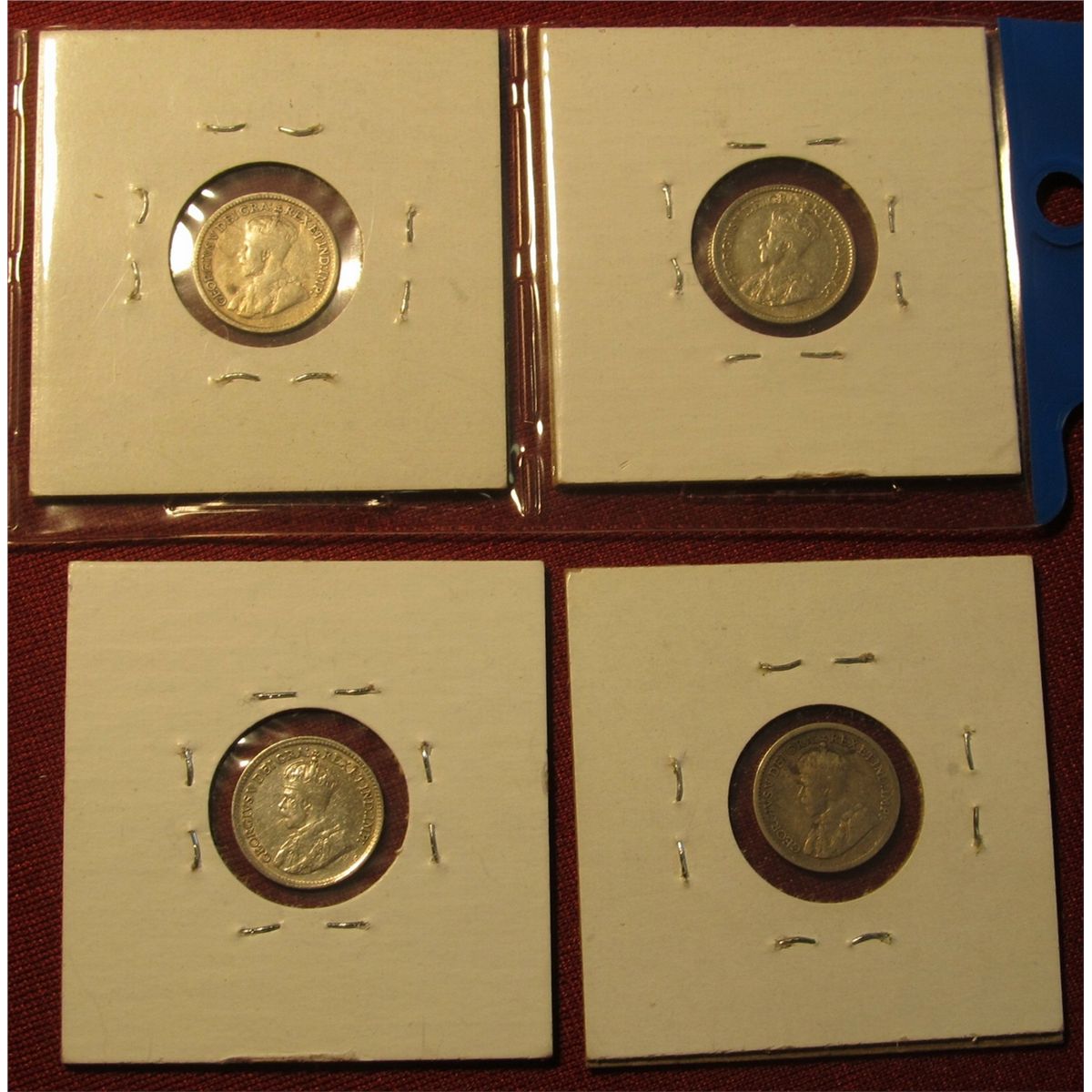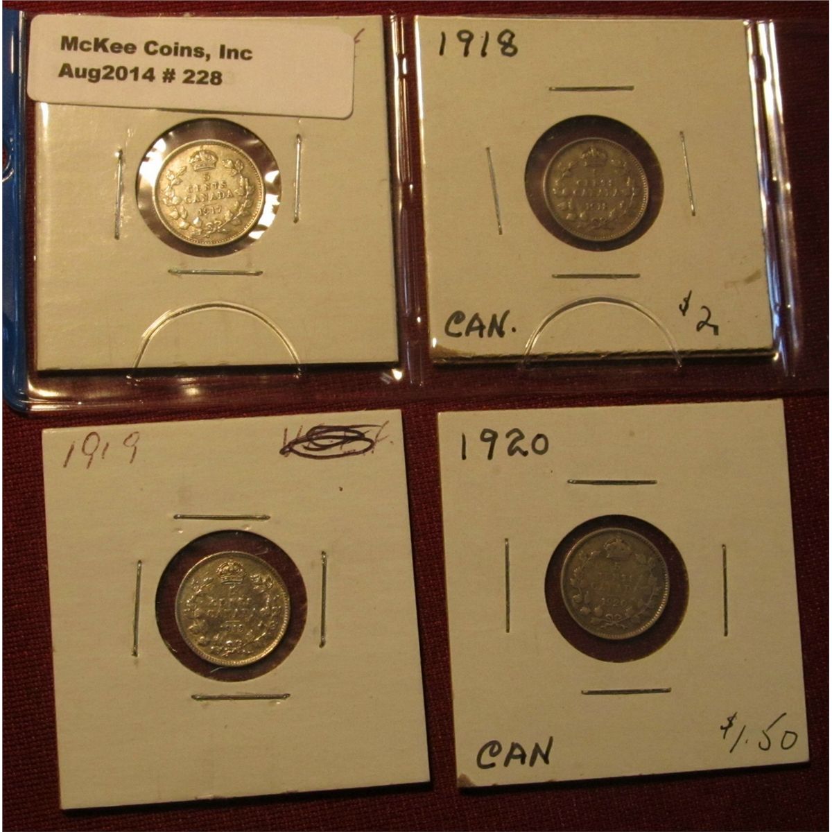 228. 1917, 18, 19, & 20 Canada Five Cent Silvers. VG-VF.