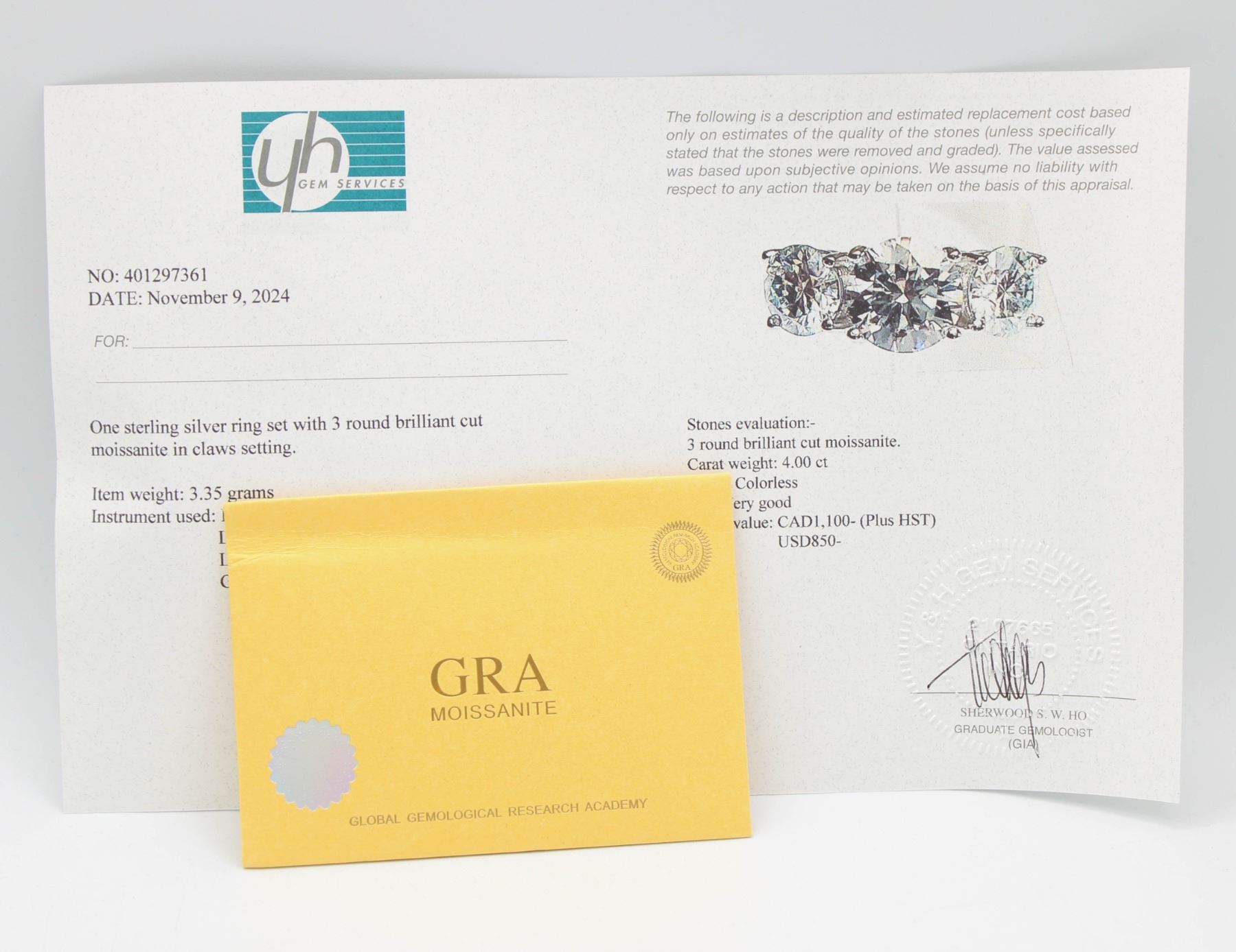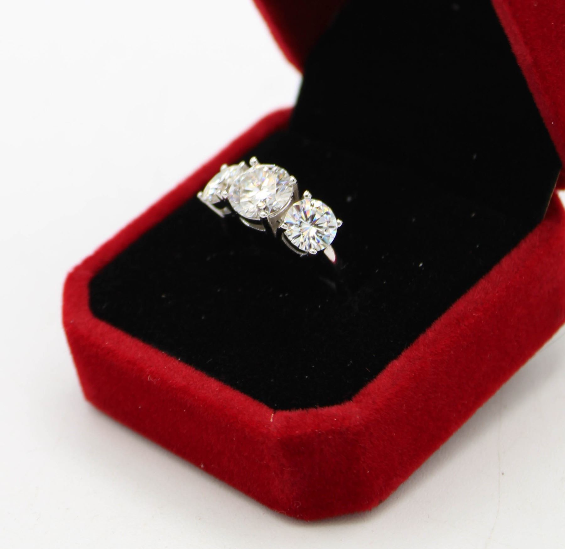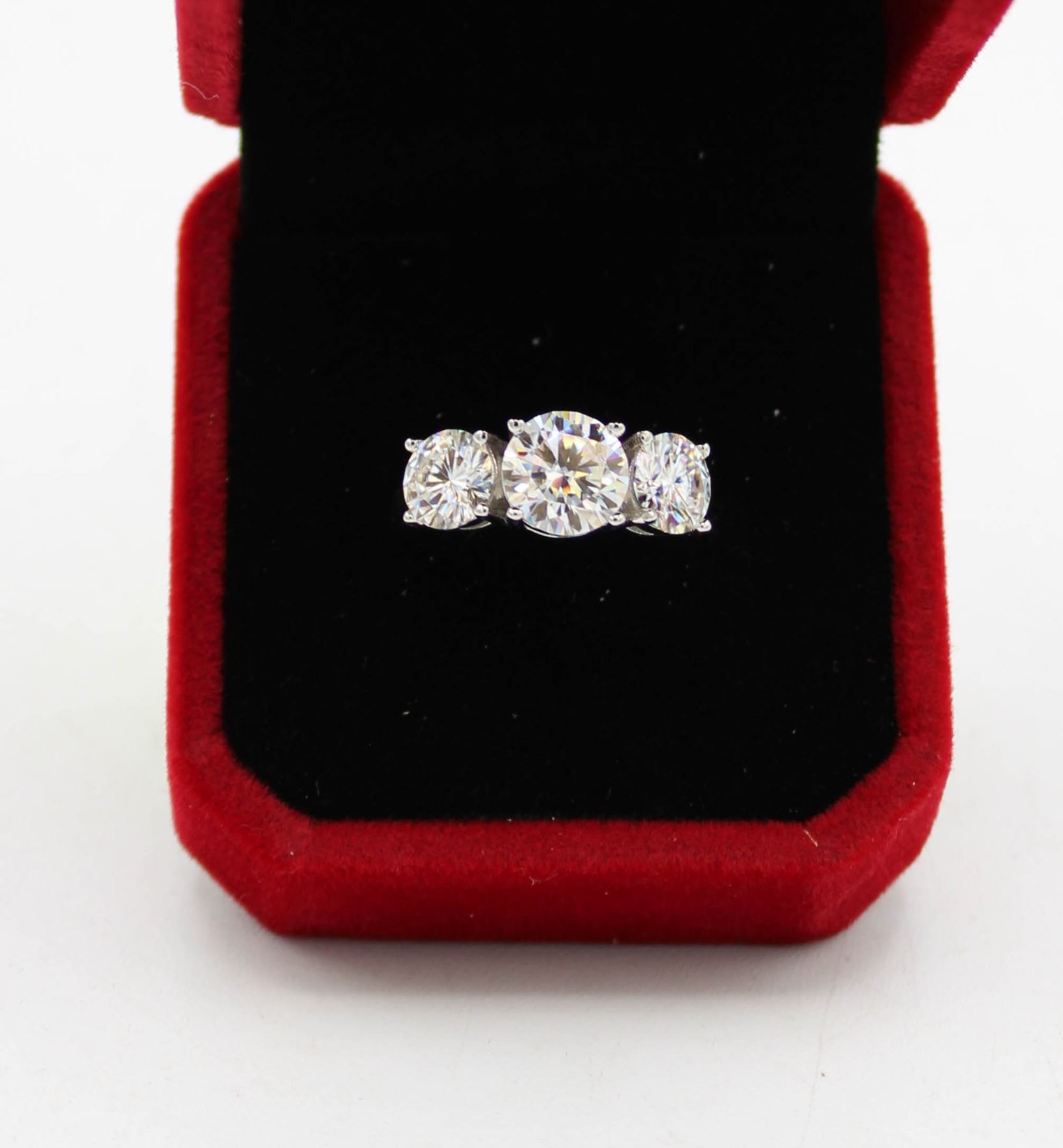 MOISSANITE STONES VVS D COLOR SET WITH 2.00 CT MOISSANITE SET IN CENTER WITH 1.00 CT MOISSANITE SET ON EITHER SIDE SET IN 925 SILVER RING SIZE 7 RETAIL VALUE $1,100.00 **ALL ITEMS MUST BE REMOVED BY 5PM SATURDAY, MARCH 8TH 2025. ALL REMAINING ITEMS WILL BE SUBJECT TO A $6.00 PER DAY STORAGE CHARGE. ANY ITEMS REMAINING AFTER MONDAY, MARCH 24TH 2025 WILL BE CONSIDERED FORFEITED. NO REFUNDS WILL BE ISSUED FOR FORFEITED ITEMS. TO SCHEDULE A PICK UP APPOINTMENT CLICK HERE