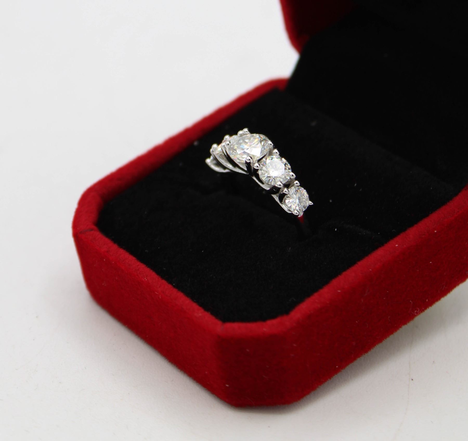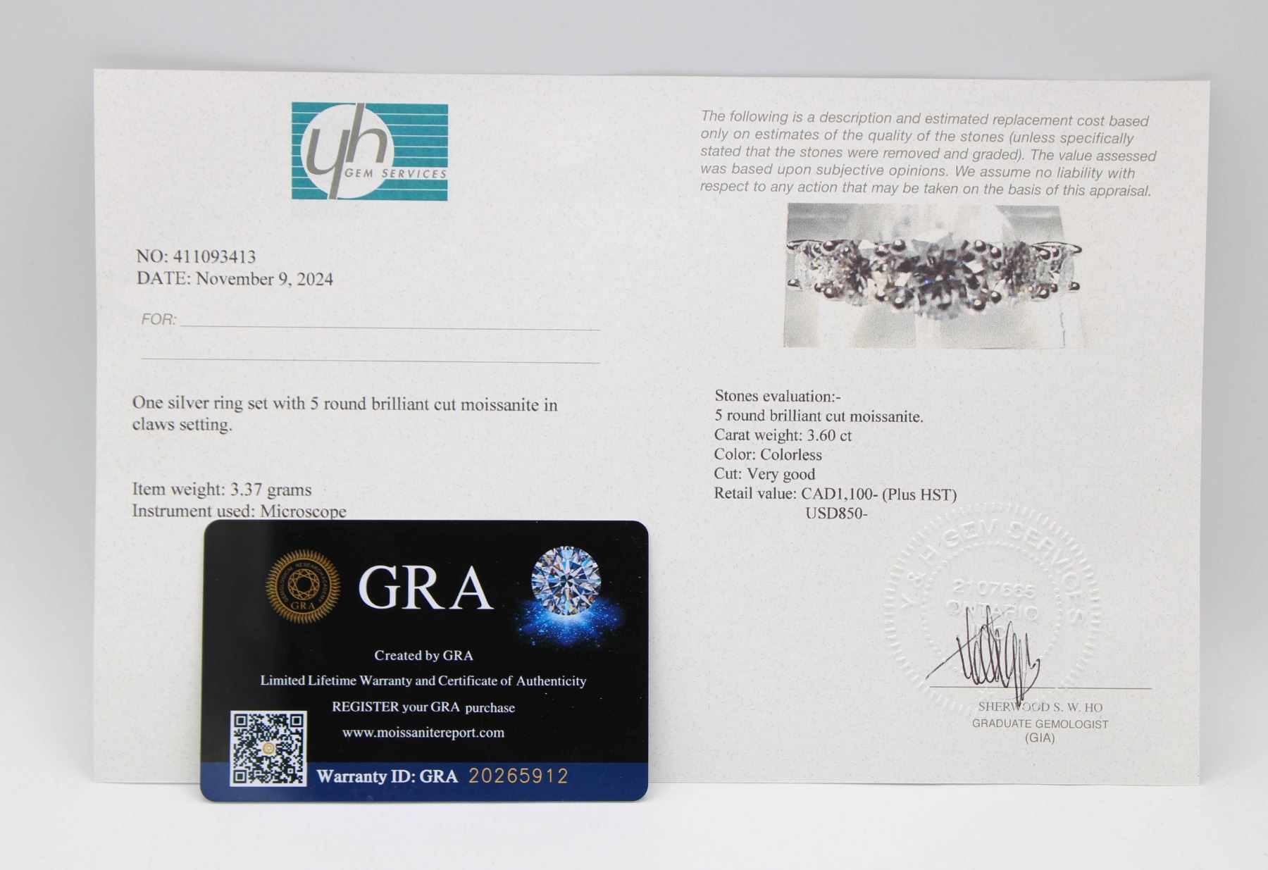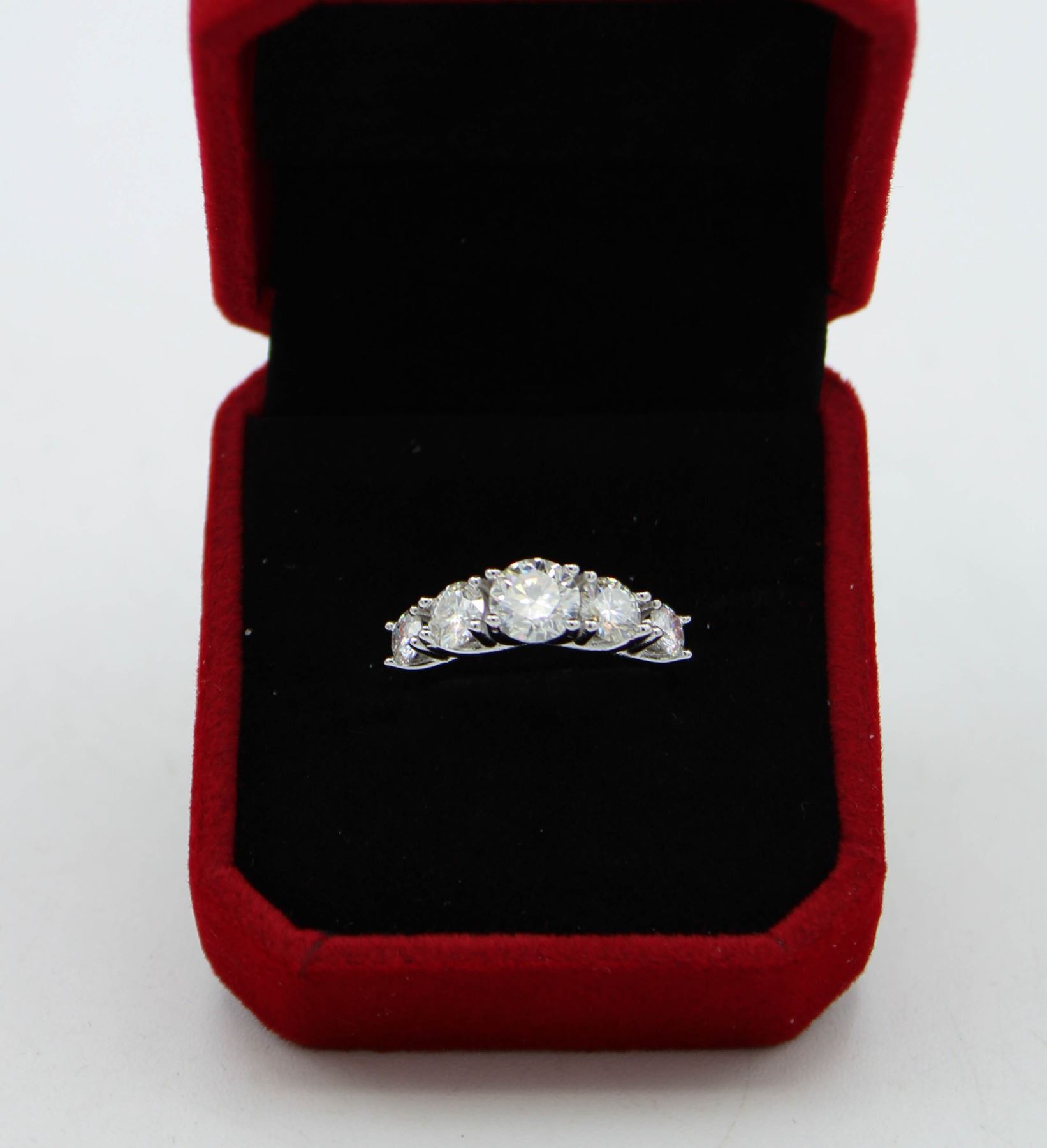 MOISSANITE STONES VVS D COLOR SET WITH 5 GRADUATING SIZES FROM THE LARGER CENTER SET IN 925 SILVER RING SIZE 6.25 RETAIL VALUE $1,100.00 **ALL ITEMS MUST BE REMOVED BY 5PM SATURDAY, MARCH 8TH 2025. ALL REMAINING ITEMS WILL BE SUBJECT TO A $6.00 PER DAY STORAGE CHARGE. ANY ITEMS REMAINING AFTER MONDAY, MARCH 24TH 2025 WILL BE CONSIDERED FORFEITED. NO REFUNDS WILL BE ISSUED FOR FORFEITED ITEMS. TO SCHEDULE A PICK UP APPOINTMENT CLICK HERE