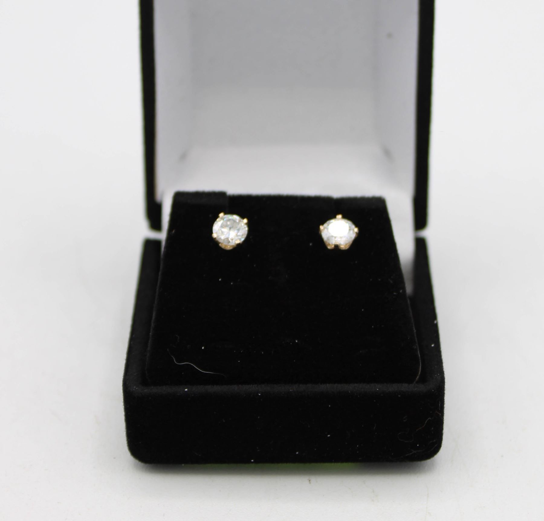 TW ROUND BRILLIANT CUT MOISSANITE STONES VVS D COLOR SET IN 14 KT YELLOW GOLD EARRINGS **ALL ITEMS MUST BE REMOVED BY 5PM SATURDAY, MARCH 15TH 2025. ALL REMAINING ITEMS WILL BE SUBJECT TO A $6.00 PER DAY STORAGE CHARGE. ANY ITEMS REMAINING AFTER MONDAY, MARCH 31ST 2025 WILL BE CONSIDERED FORFEITED. NO REFUNDS WILL BE ISSUED FOR FORFEITED ITEMS. TO SCHEDULE A PICK UP APPOINTMENT CLICK HERE