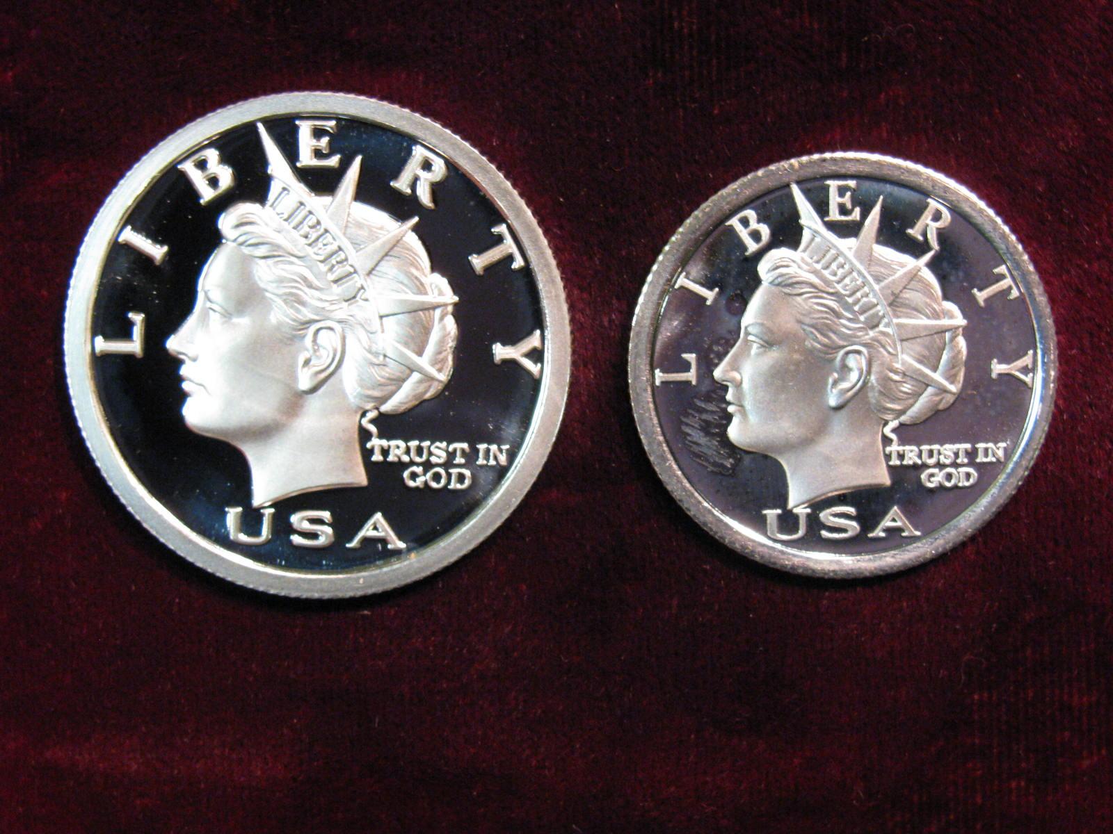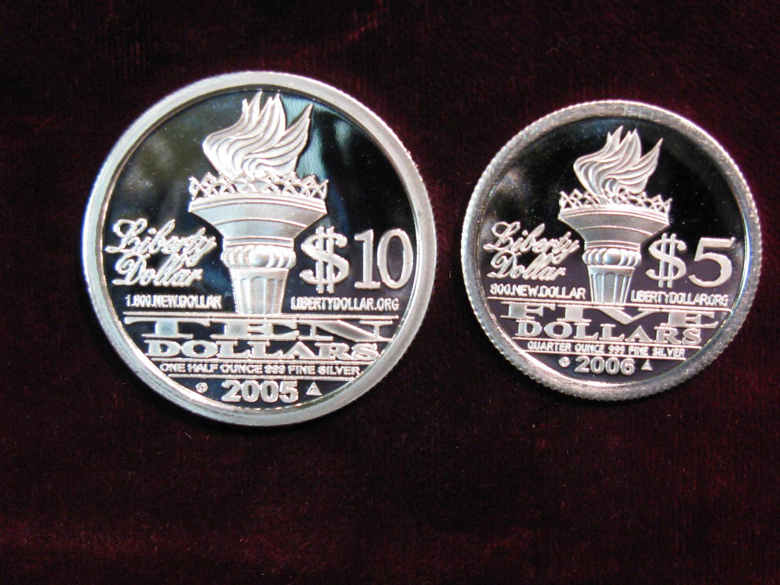 2287. $5 & $10. Silver Liberty Dollars. Proof.