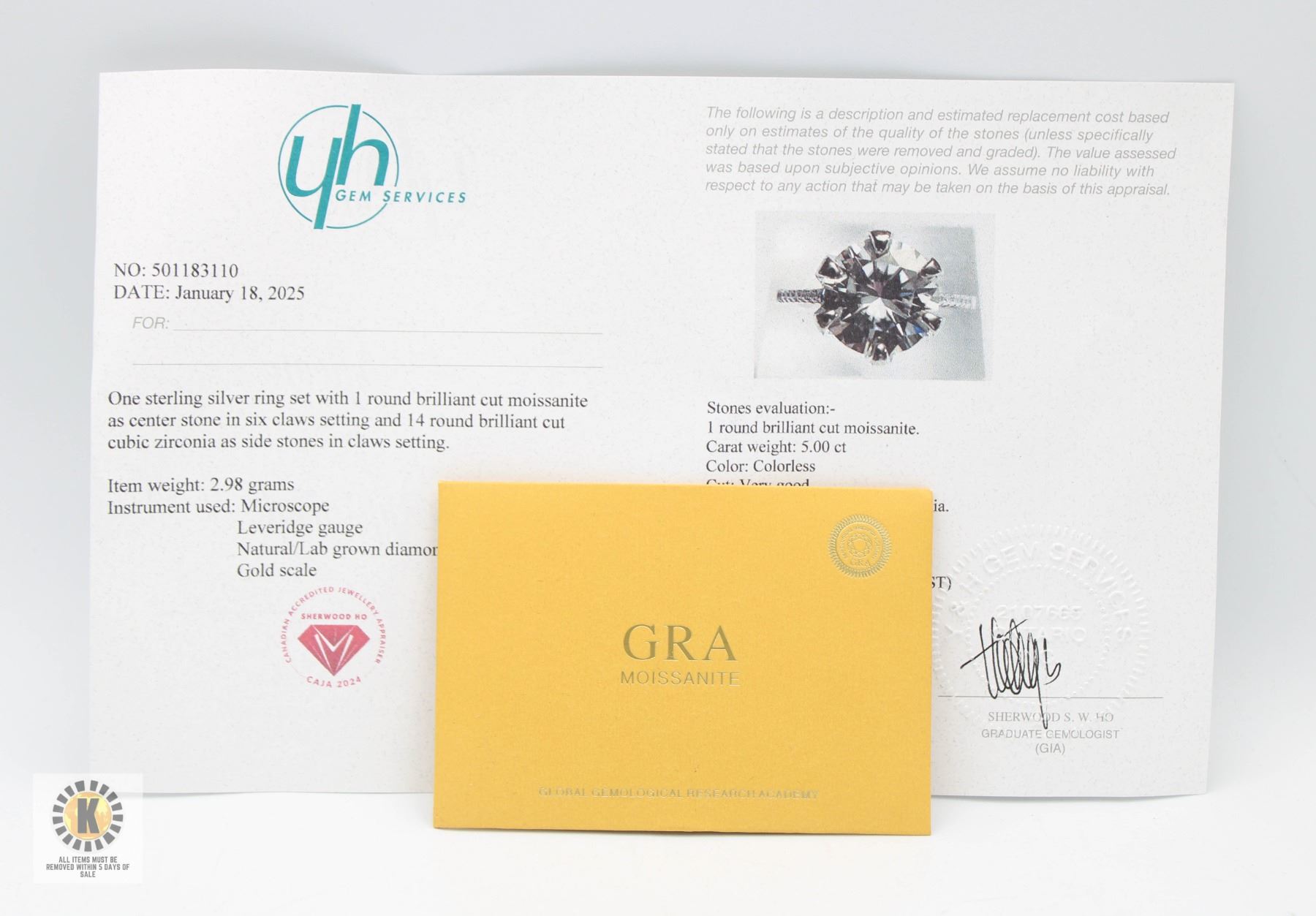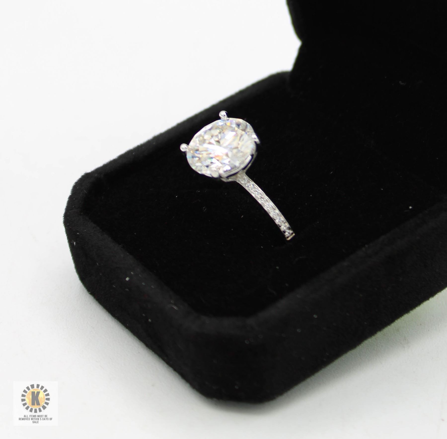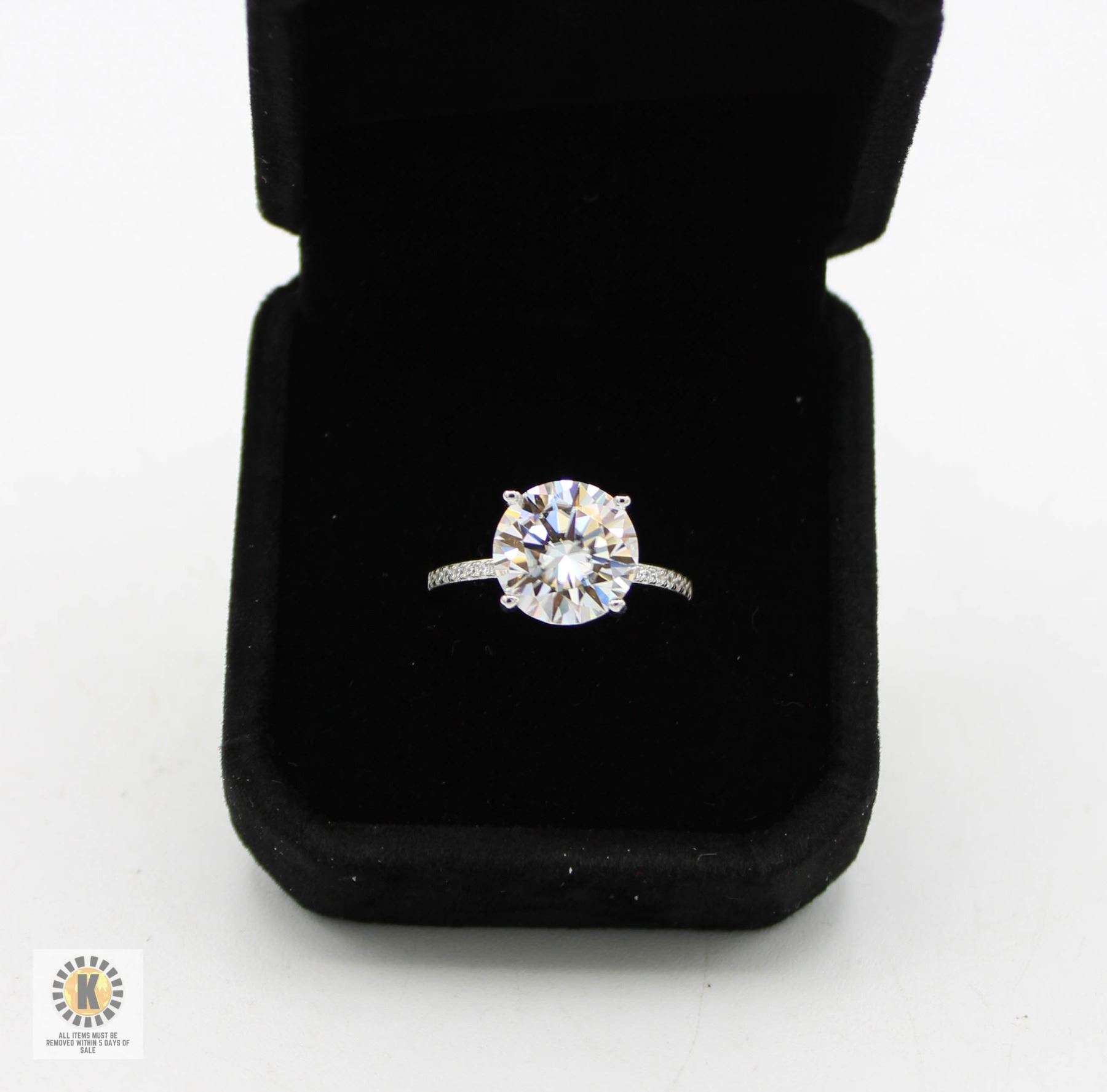 CUT MOISSANITE STONE VVS D COLOR SET IN CENTER WITH 14 ROUND BRILLIANT CUT CUBIC ZIRCONIA AND SET IN 925 SILVER RING SIZE 7 RETAIL VALUE $1,450.00 **ALL ITEMS MUST BE REMOVED BY 5PM SATURDAY, MARCH 15TH 2025. ALL REMAINING ITEMS WILL BE SUBJECT TO A $6.00 PER DAY STORAGE CHARGE. ANY ITEMS REMAINING AFTER MONDAY, MARCH 31ST 2025 WILL BE CONSIDERED FORFEITED. NO REFUNDS WILL BE ISSUED FOR FORFEITED ITEMS. TO SCHEDULE A PICK UP APPOINTMENT CLICK HERE