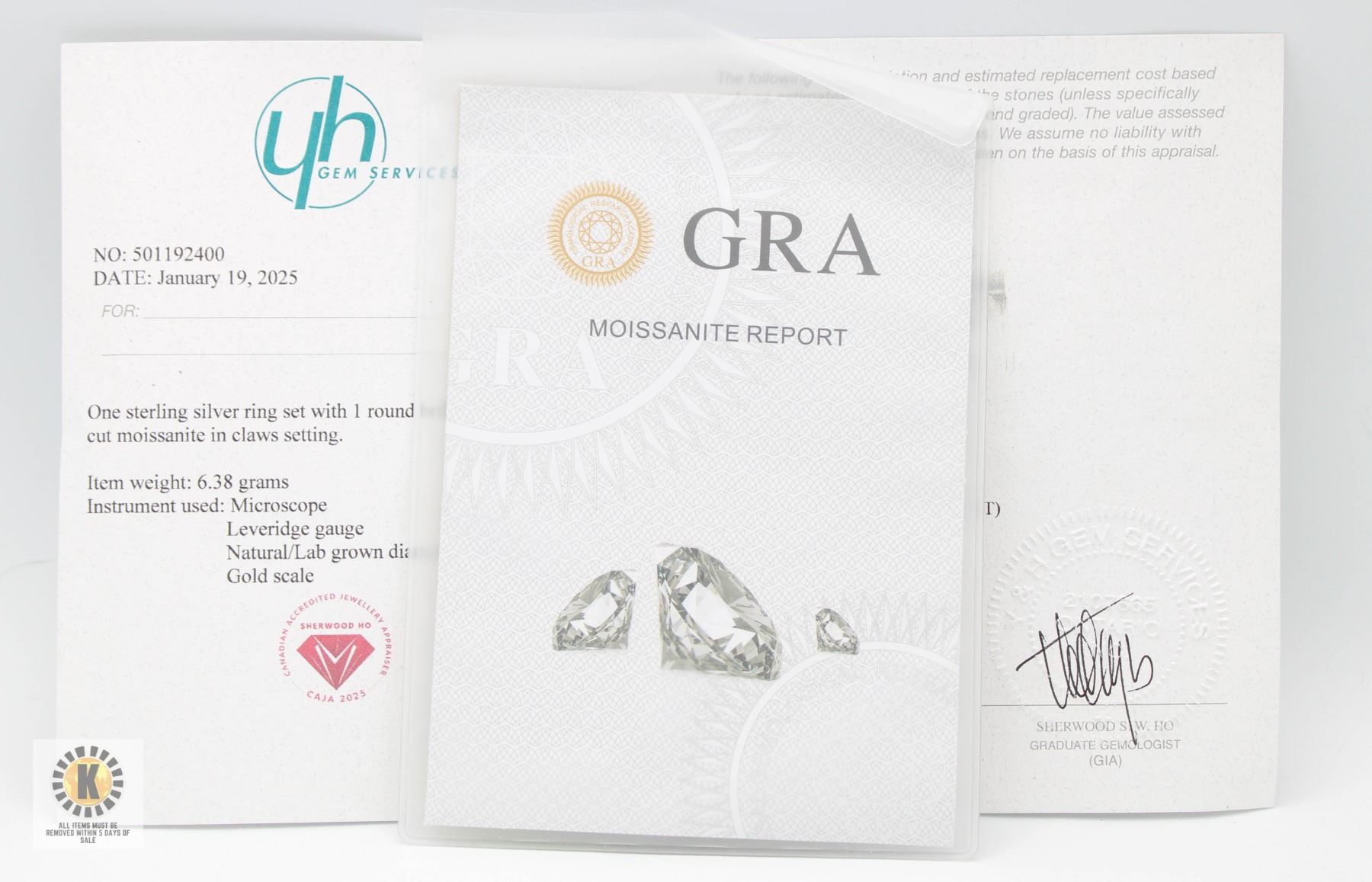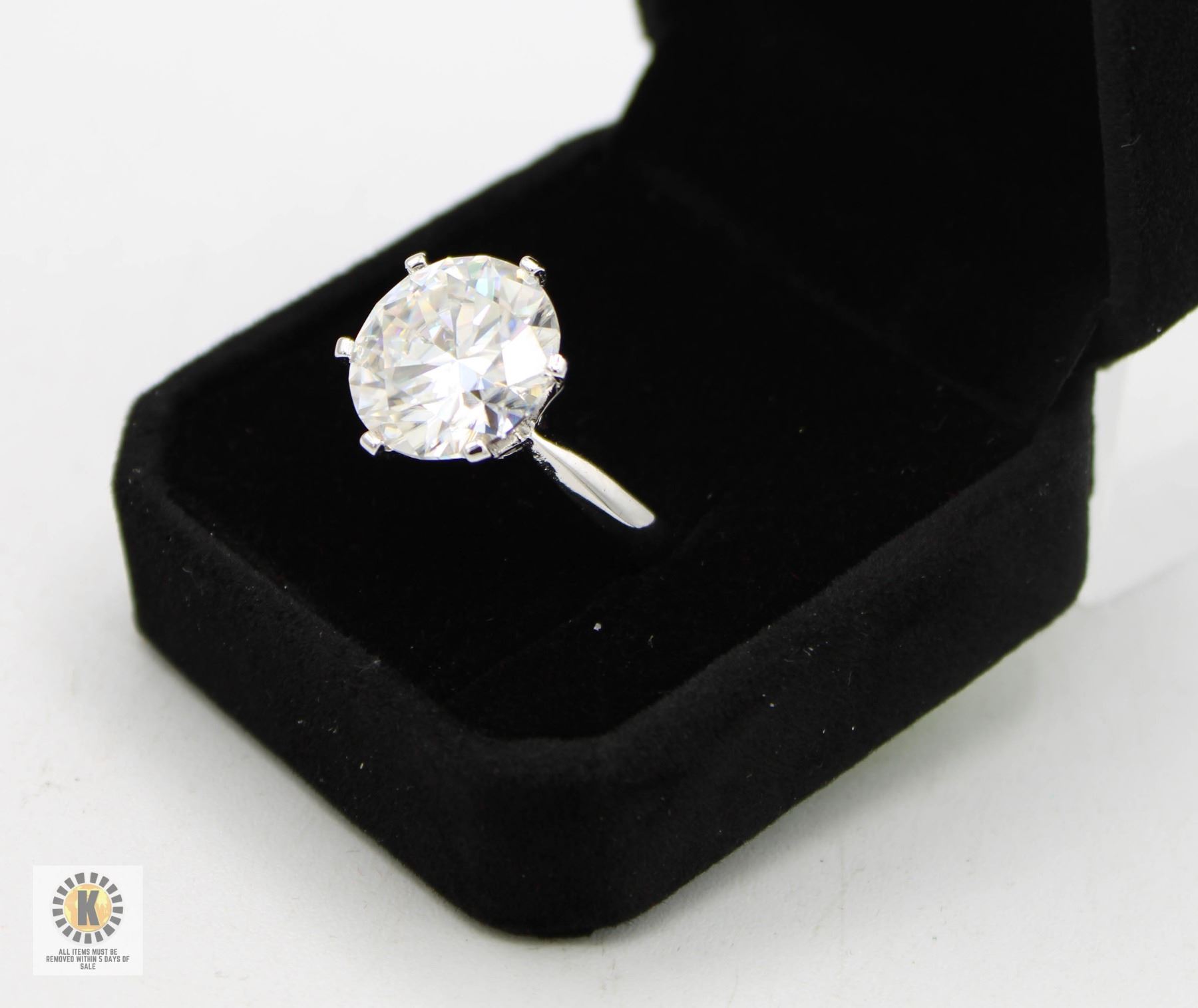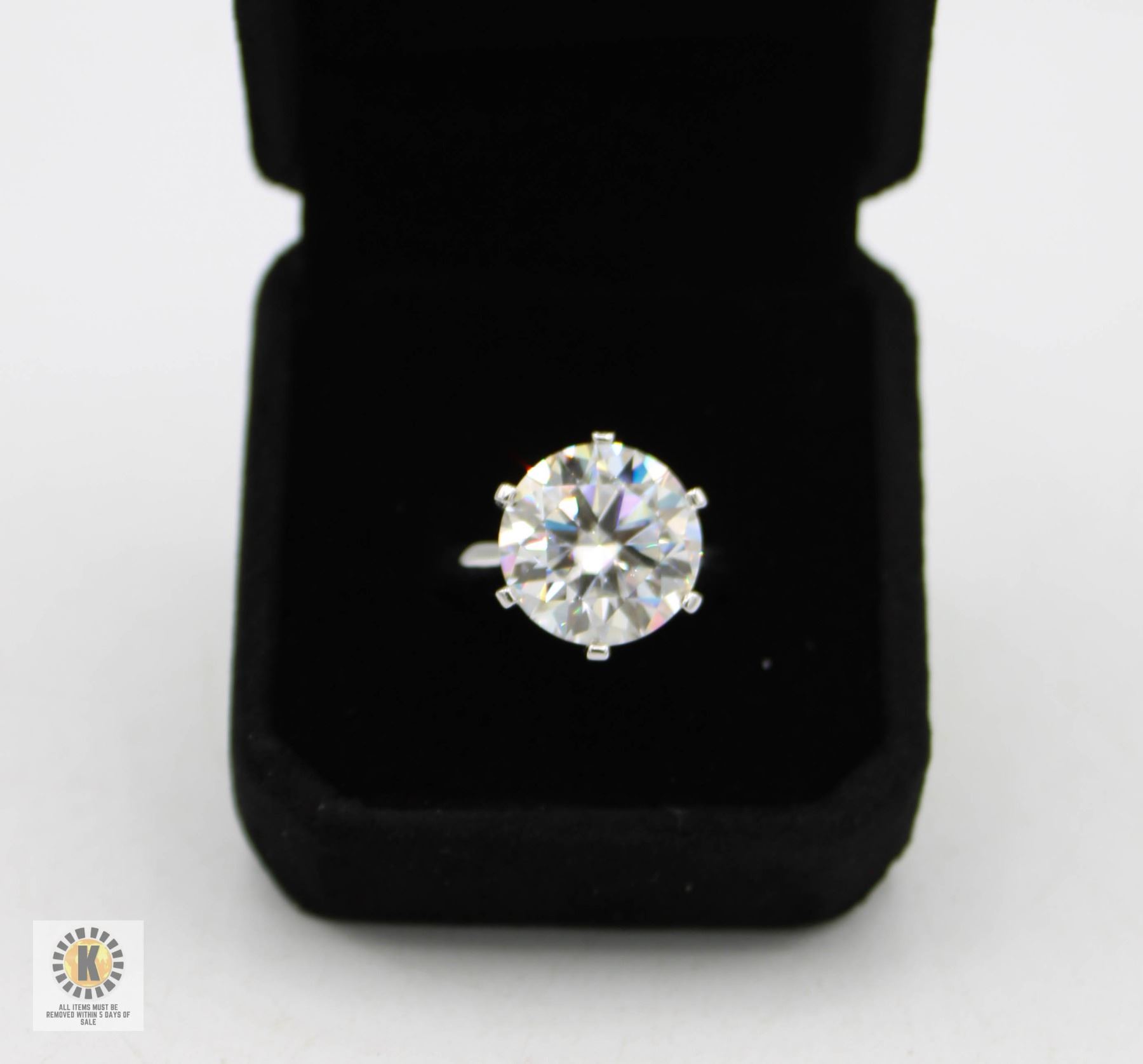 CUT MOISSANITE STONE VVS D COLOR SET IN CENTER WITH 18 ROUND BRILLIANT CUT CUBIC ZIRCONIA IN 925 SILVER RING SIZE 9 RETAIL VALUE $2,650.00 **ALL ITEMS MUST BE REMOVED BY 5PM SATURDAY, MARCH 15TH 2025. ALL REMAINING ITEMS WILL BE SUBJECT TO A $6.00 PER DAY STORAGE CHARGE. ANY ITEMS REMAINING AFTER MONDAY, MARCH 31ST 2025 WILL BE CONSIDERED FORFEITED. NO REFUNDS WILL BE ISSUED FOR FORFEITED ITEMS. TO SCHEDULE A PICK UP APPOINTMENT CLICK HERE