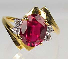 22K GOLD VERMEIL, RUBY AND LAB DIAMOND LADIES RING