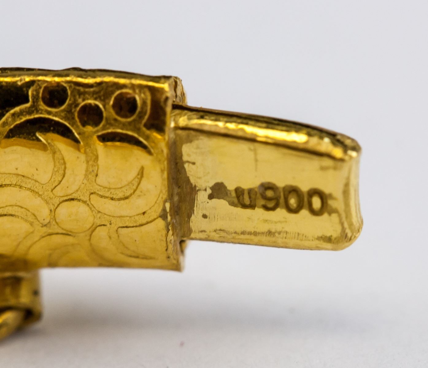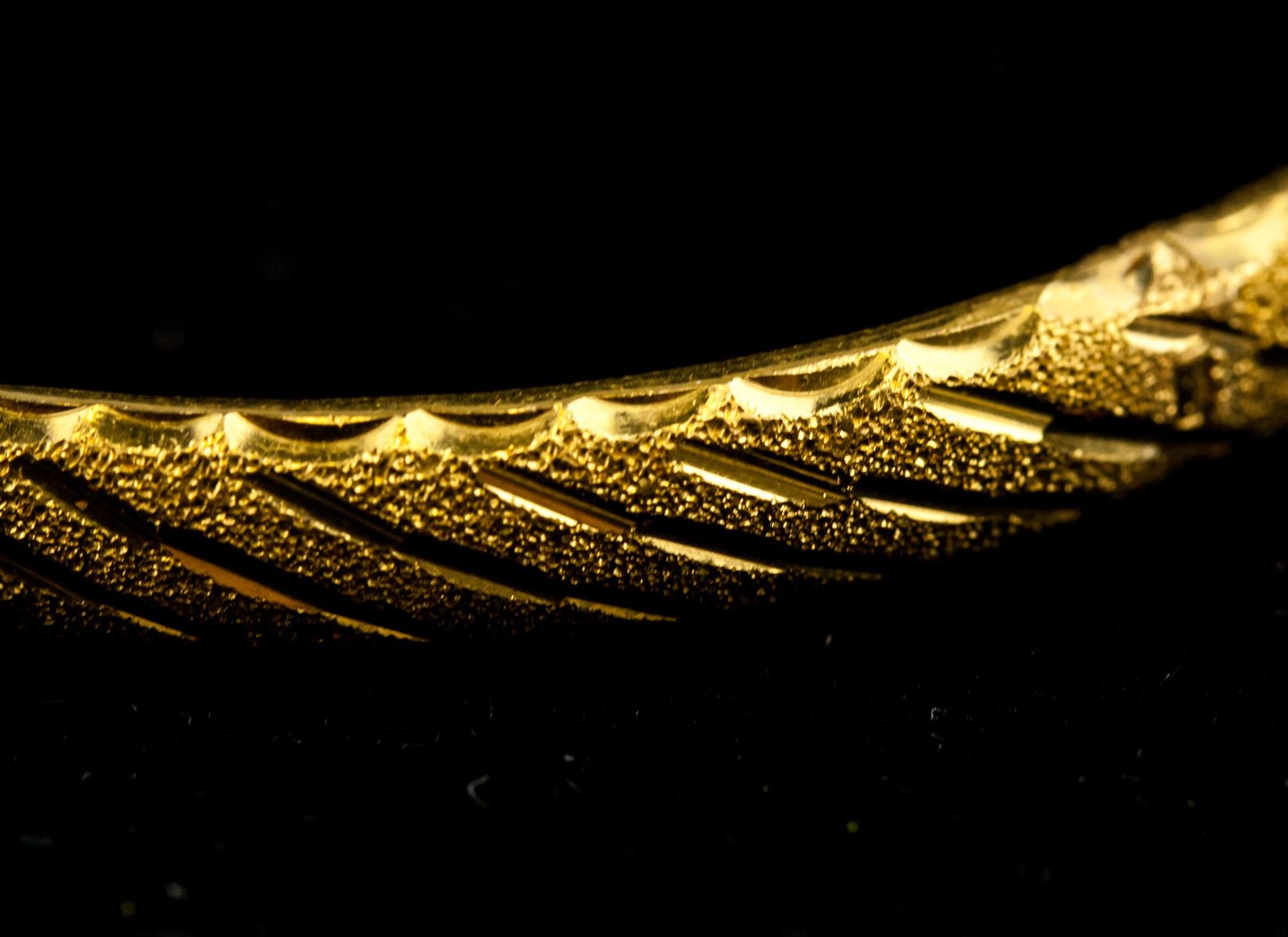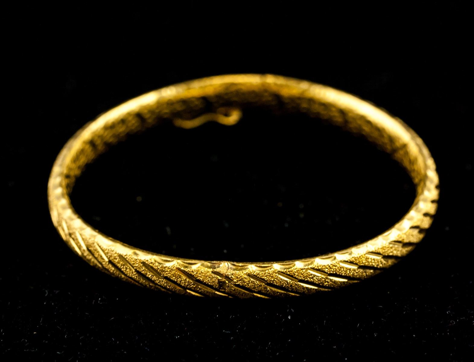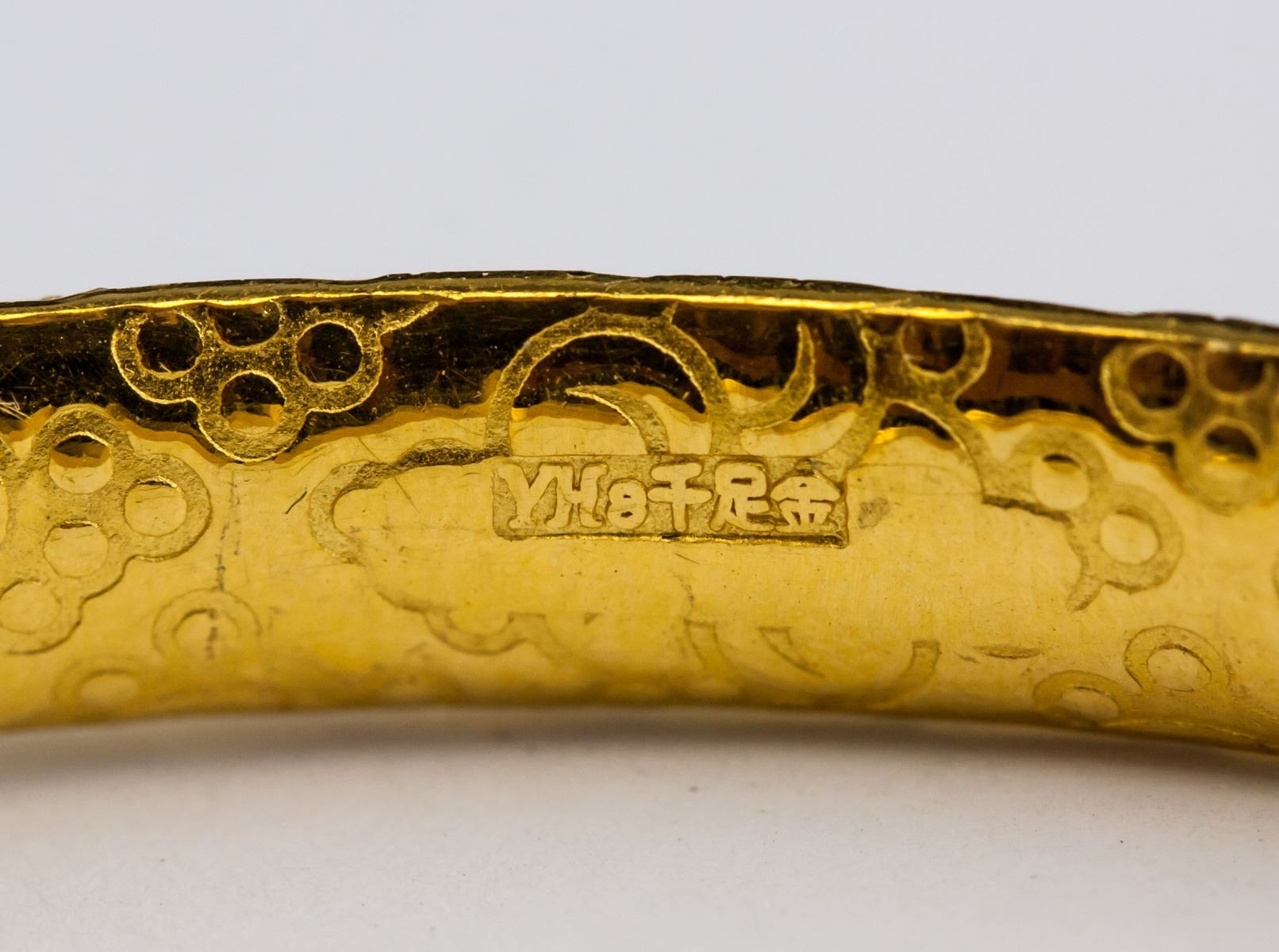 22k gold bracelet. Stamped Au900 and Qian Zu Jin mark. 15.3 grams, D: 53.9 mm