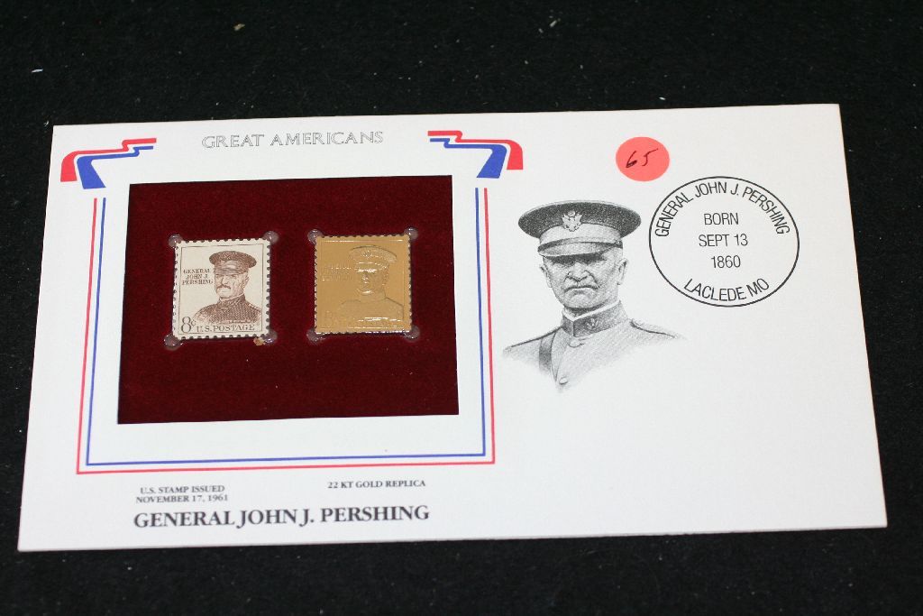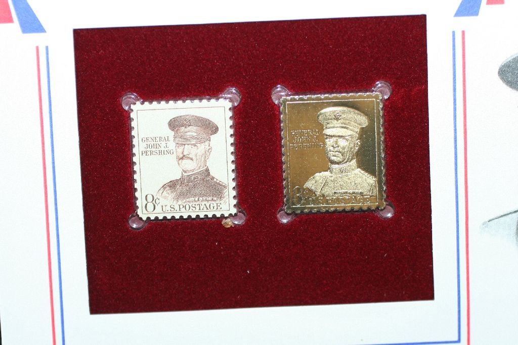 22K Gold Replica Stamp W/Postal Stamp Issued 1961; General John J Pershing-Great Americans