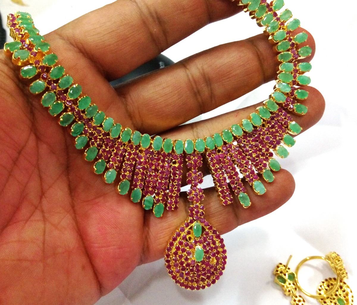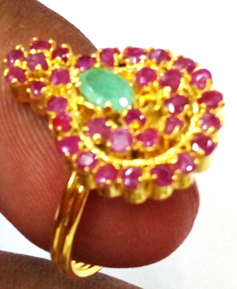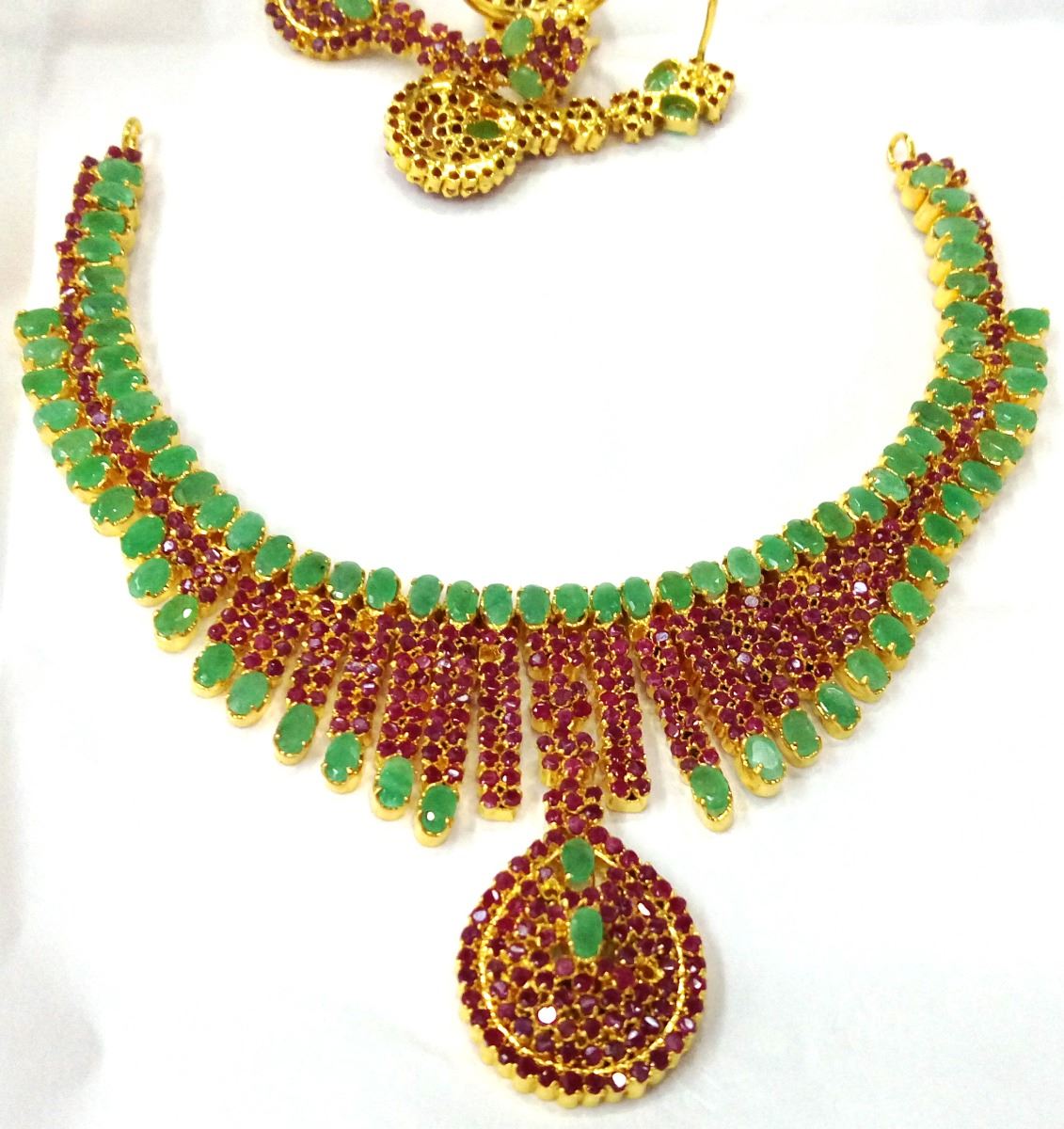 22K Gold over Sterling Silver Natural Ruby & Genuine Emerald Jewelry Suite (3pc matching set)