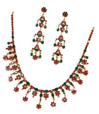 22K Gold over Sterling Silver Natural Ruby & Emerald Necklace & Earring Jewelry Suite Set