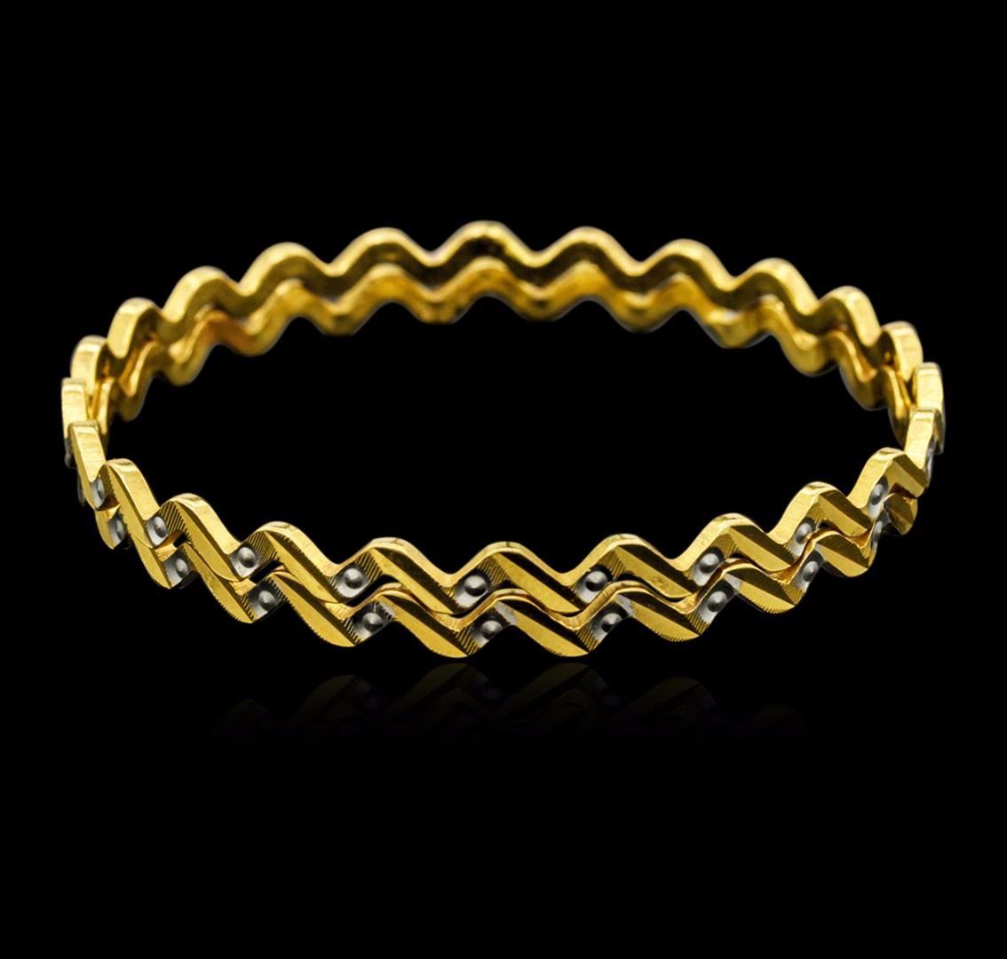 Beautiful pair of 22KT Yellow Gold Fancy Zig Zag Bangle Bracelets measuring 2-1/2" wide and weighs 30.00 grams.
