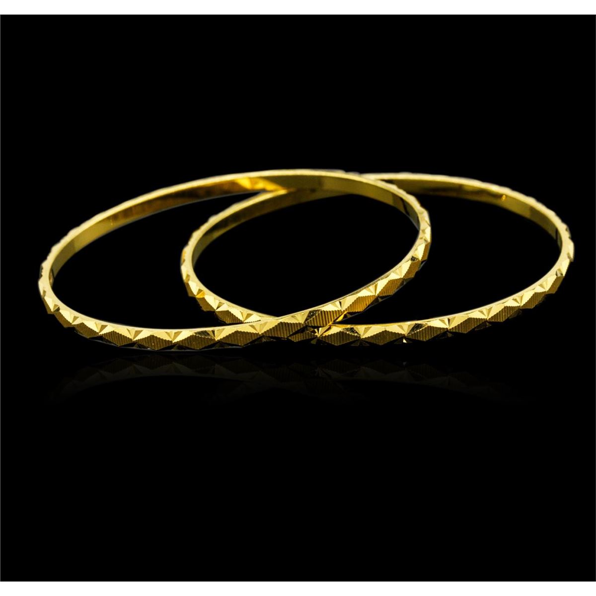 Beautiful pair of 22KT Yellow Gold Fancy Bangle Bracelets measuring 2-1/4" wide and weighs 23.00 grams.