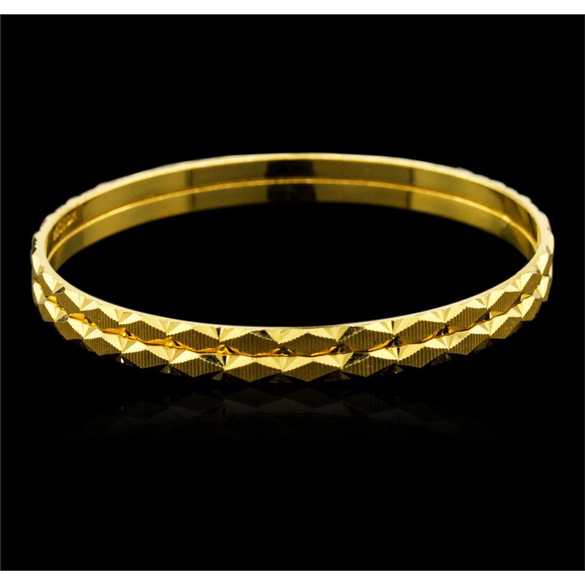 Beautiful pair of 22KT Yellow Gold Fancy Bangle Bracelets measuring 2-1/4" wide and weighs 23.00 grams.