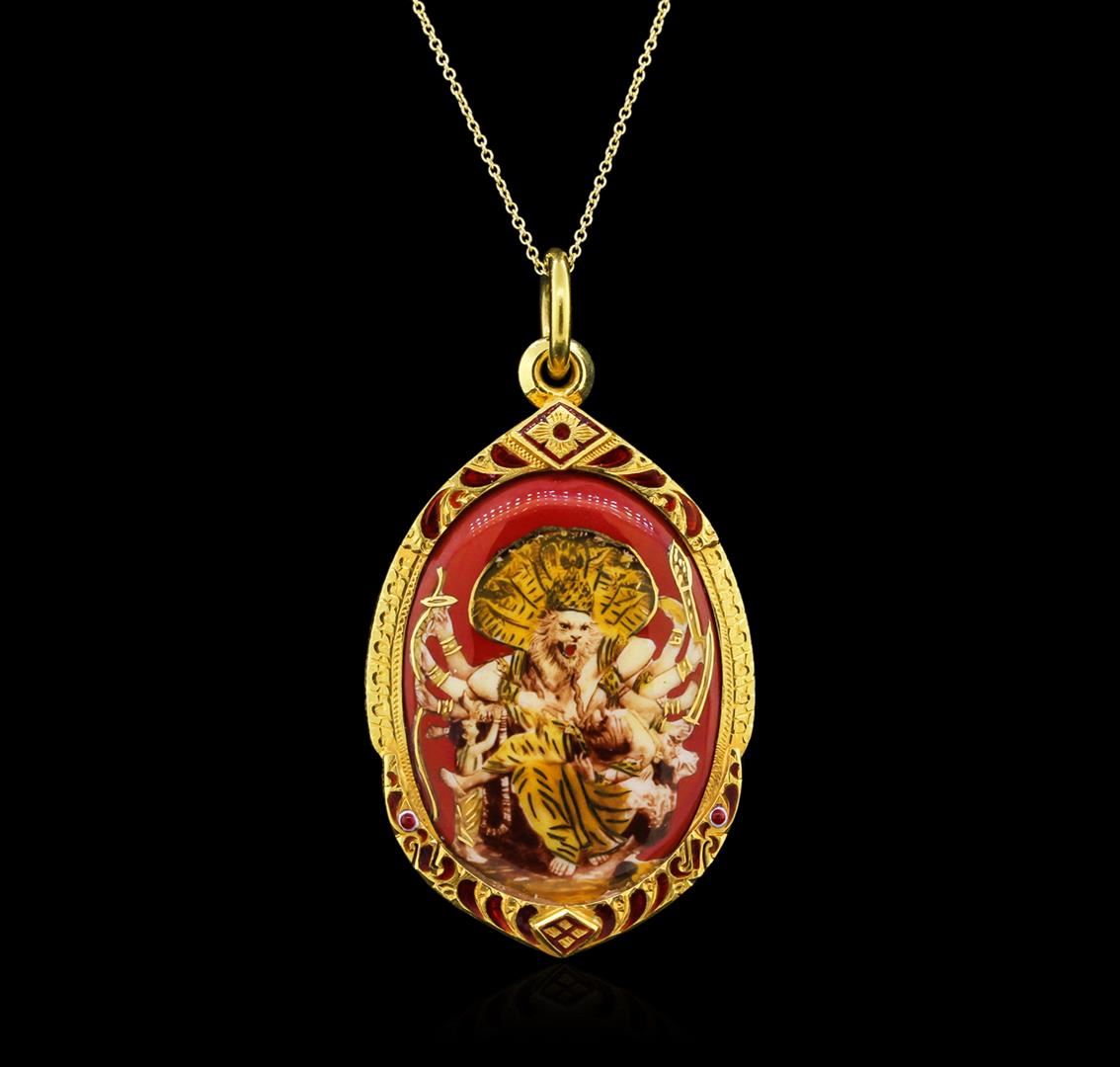 One Indian theme pendant with chain featuring: 22KT yellow gold weighing 18.01 grams.