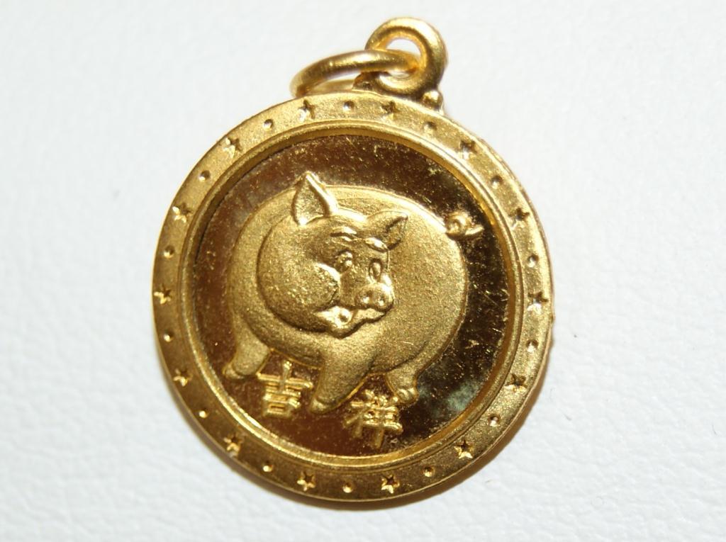 Total Retail $990 22Kt Yellow Gold -- (#1) Retail Price $990 22Kt Yellow Gold -- 22Kt Pig Design Chinese Symbol Pendant --