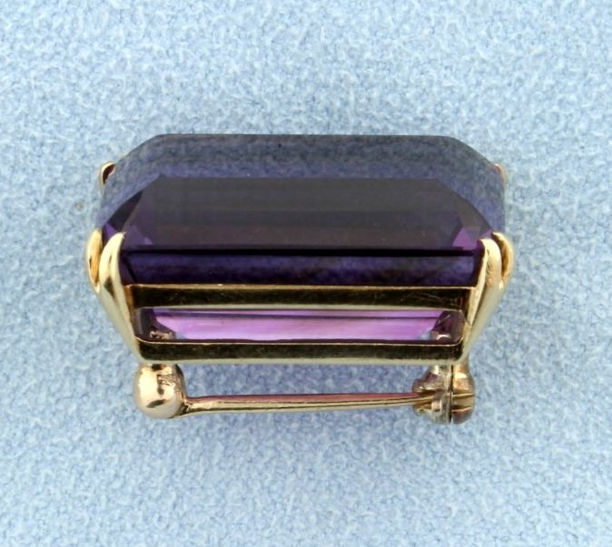 In 14K yellow gold, the Amethyst is extremely high quality emerald cut with excellent color & clarity. The pin is 7/8 inch long. 8.5g