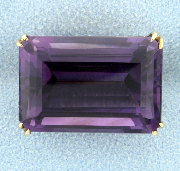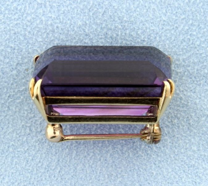 In 14K yellow gold, the Amethyst is extremely high quality emerald cut with excellent color & clarity. The pin is 7/8 inch long. 8.5g