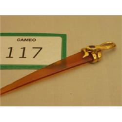 22ct gold circa 1800 gold and tortoishell hair slide, in form of coiled snake as the terminal inset with diamond eyes and central conflower blue sapphire on head