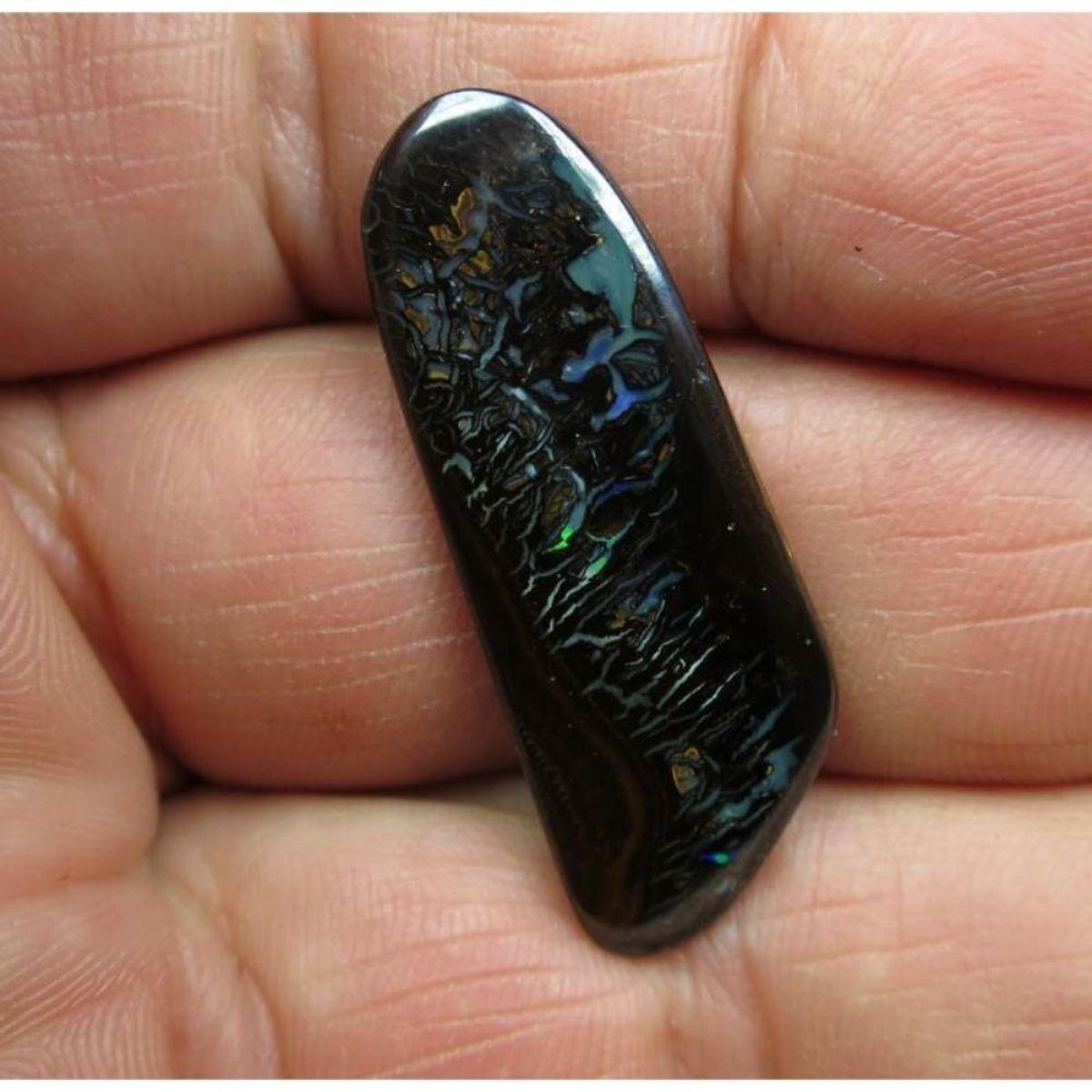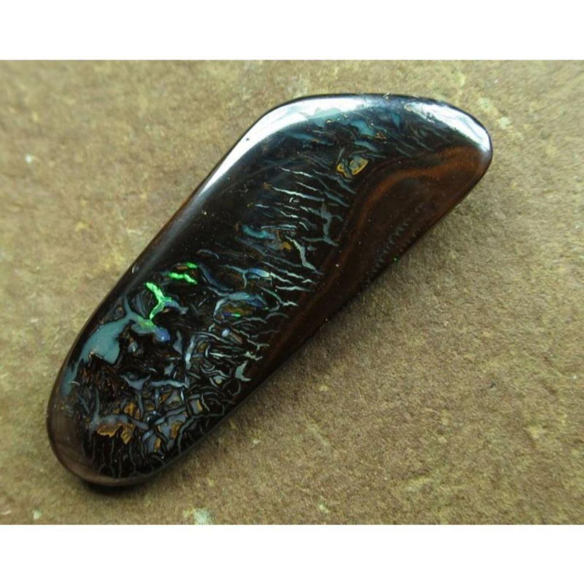 TYPE OF OPAL…................BOULDER MATRIX/UNTREATED. FIELD/ORIGIN….................QUEENSLAND AUSTRALIA. COLOUR…..........................AS PER IMAGE. PATTERN…..........................AS PER IMAGE. NO OF PIECES….........................1. BRIGHTNESS RATING 1 TO 5. =4.4. DESCRIPTION…..........................GREAT PATTERN EXTRA BRIGHT NATURAL SOLID AUSSIE BOULDER MATRIX OPAL. (opal colour and pattern as per image, the stone you see in pictures is the stone you get.)  -- Additional General Details about Opals to Inform the Knowing Bidder: Opal is a hydrated amorphous form of silica (SiO2·nH2O); its water content may range from 3 to 21% by weight, but is usually between 6 and 10%. Because of its amorphous character, it is classed as a mineraloid, unlike crystalline forms of silica, which are classed as minerals. It is deposited at a relatively low temperature and may occur in the fissures of almost any kind of rock, being most commonly found with limonite, sandstone, rhyolite, marl, and basalt. Opal is the national gemstone of Australia. The internal structure of precious opal makes it diffract light. Depending on the conditions in which it formed, it can take on many colors. Precious opal ranges from clear through white, gray, red, orange, yellow, green, blue, magenta, rose, pink, slate, olive, brown, and black. Of these hues, the black opals are the rarest, whereas white and greens are the most common. Opals vary in optical density from opaque to semi-transparent and show opalescence, a form of iridescence. There are 9 separate factors that contribute to the price of an Opal. These factors are: Color Direction / Play of Color Pattern Body tone Brightness Shape Inclusions Where the Opal was mined Country of Origin At Lightning Ridge, in Australia, a committee values opal miner’s opals each Saturday. Several opal appraiser price each opal by carat with the final value determined by the price per carat. COLOR In order of evaluation value, the most valuable color is a dominant red, then orange, green, blue and purple. Electric blue Opals is the most valuable of the blues. DIRECTION OF COLOR Opals are a gemstone that dramatically change appearance based on the angle of view. When an Opal is at it’s brightest, this is called its ‘facing’/ andle. The direction of color will affect the price because it determines how versatile the Opal is. PATTERN Opals that have a rare or unique pattern are more valuable. The Harlequin patternis the rarest and most loved pattern in opals but it is very rare. A True harlequin pattern is a mosaic broad pattern, angular close set of colors. Floral patterns are sometimes called floral harlequin.Some top patterns are Mackerel, Block, Broad flash, Rolling-flash, Pin-fire, Rainbow and most sought out Ethiopian opal is the Honeycomb pattern. BODY TONE Opals are grouped in 9 sub categories N1 to N9 with N1 the darkest opal and N9 the lightest. Black opals are generally the most valuable and have a body tone of N1 to N4 Opals with N5 to N6 considered a semi black or dark opal. Body tone N7 to N9 are called crystal opals. BRIGHTNESS The Opal brightness guide was produced by the Australian opal association along with the body tone guide. There are 7 sub Brightness ratings with B1 the brightest to B7 the dullest. The brighter the Opal, the more expensive will be its value. SHAPE Oval stone are generally considered more valuable than free form, except with boulder opals where free form is considered desirable. The shape of the Opal once again determines how versatile it is. Oval stones generally have the best face of color and can be used in a variety of applications. Opal is almost always cut in a cabochon. A cabochon stone is more valuable when it has a high. This is due to the fact that cabochons make ideal ring stones. INCLUSIONS Inclusions and potch lines and are not to be confused with cracks. A crack line reflects light and greatly devalues an Opal. A potch line has no light reflection and these opals are generally valued lower but can make artistic picture patterns. Some Opals will have a vegetation pattern from the inclusions and this is popular as the opal has replaced some of the tree or vegetation. Sand or windows also reduce the value of the opal. A window is a gap on the bottom where potch has not formed and opal is transparent. Ethiopian opal can have a ghost or phantom inclusions or vegetation matter. These types of inclusions are generally accepted as reasonable in this type opal. OPAL FIELD SOURCE The end buyer or wholesaler might not be able to consider this factor. But in the trade certain mines have a reputation of producing good quality rough that makes excellent stones. This happens in Australian and Ethiopian opal fields. Even the depth of the mine can greatly effect value. Opal doublets and triplets do not have the same stringent criteria as solid opals and are valued considerable less. It is important to be able to pick a doublet opal compared to a solid and this can be difficult when the opal is set into jewelry. COUNTRY OF ORIGIN Australia has a worldwide reputation as the world’s most expensive opals. Many countries now produce good opals like Ethiopia, Mexico and Brazil. Each country’s opals may be unique and this factor helps determine the Opal price. Regardless of the country of origin, all opals are rare, valuable and unique. Opal Stones rank very high as an appreciating asset.  - #783-042319-CM-21-281