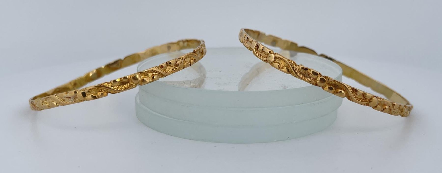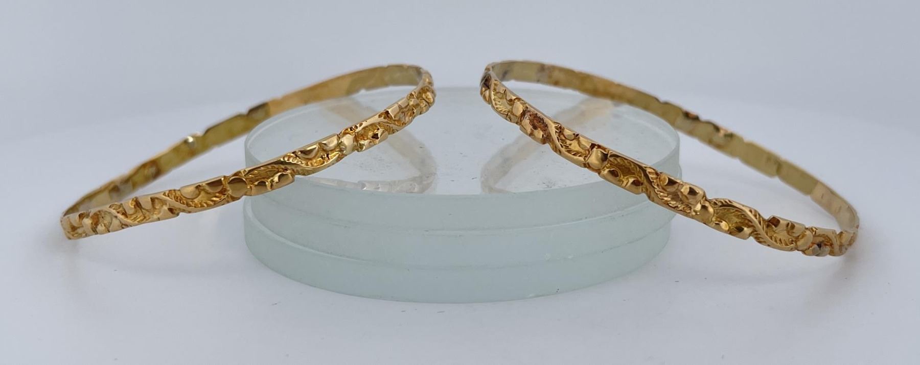 Very nice pair of high purity gold bracelets. 15.03 grams total weight.