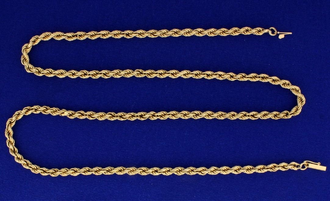 In 14k yellow gold. 4mm thick with safety clasp. 12.8g.
