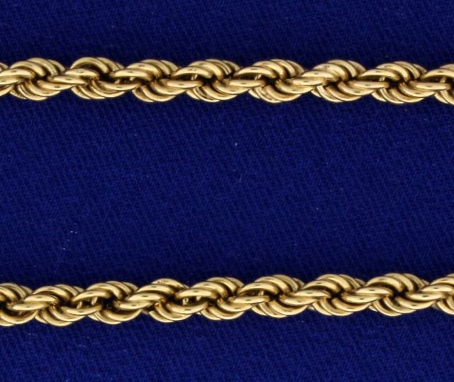 In 14k yellow gold. 4mm thick with safety clasp. 12.8g.