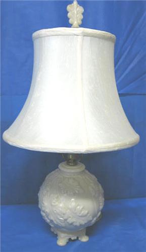 23-1/2" "LEAF" PATTERN WHITE GLASS TABLE LAMP