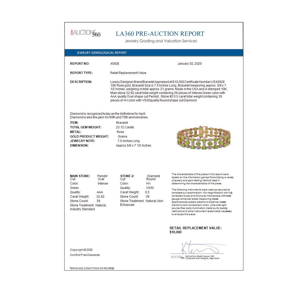 REF-227F3M - SKU: 40928 ---- 23.12 ctw Peridot & Diamond Bracelet 10K Rose Gold