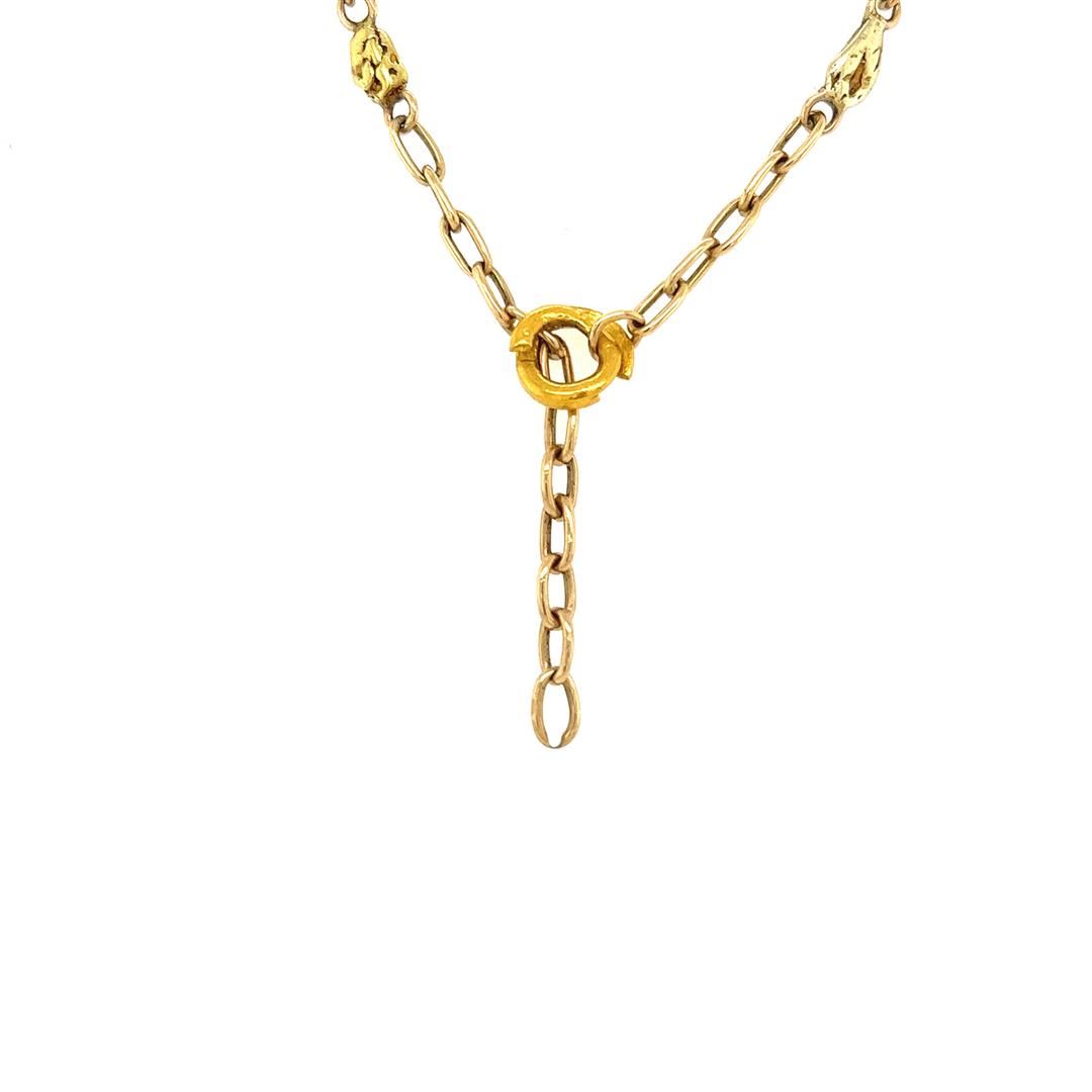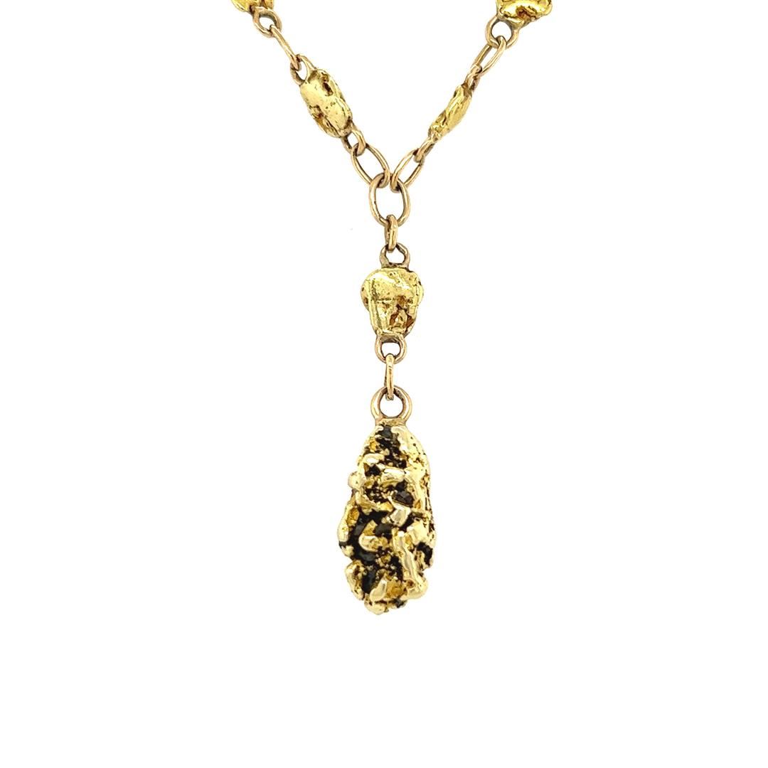 One 23.21 Gram Total Weight Gold Nugget Necklace, the total length of this necklace is approximately 17.5 inches.