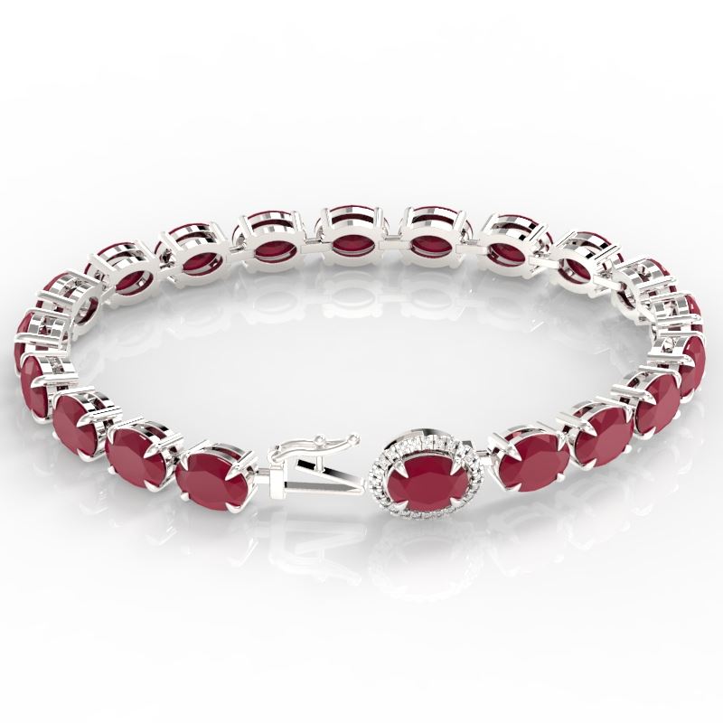 REF-154W5F -40244 ---- 23.25 CTW Ruby & VS/SI Diamond Eternity Tennis Micro Halo Bracelet 14K White Gold ---- Luxury Designer Brand Bracelet Appraised at $11,900 Certificate Number US40244 14k White gold, Bracelet Size is 7 Inches, Bracelet measuring approx. 8 mm x 7 INCHES, weighing in total approx. 12 grams. Made in the USA and is stamped 14k, Main stone 23 carat total weight containing 22 pieces of Mid-Opaque-Deep Red color with AAA quality Oval shape cut Ruby , Stone #2 0.25 carat total weight containing 24 pieces of H-I color with VS/SI quality Round shape cut Diamond