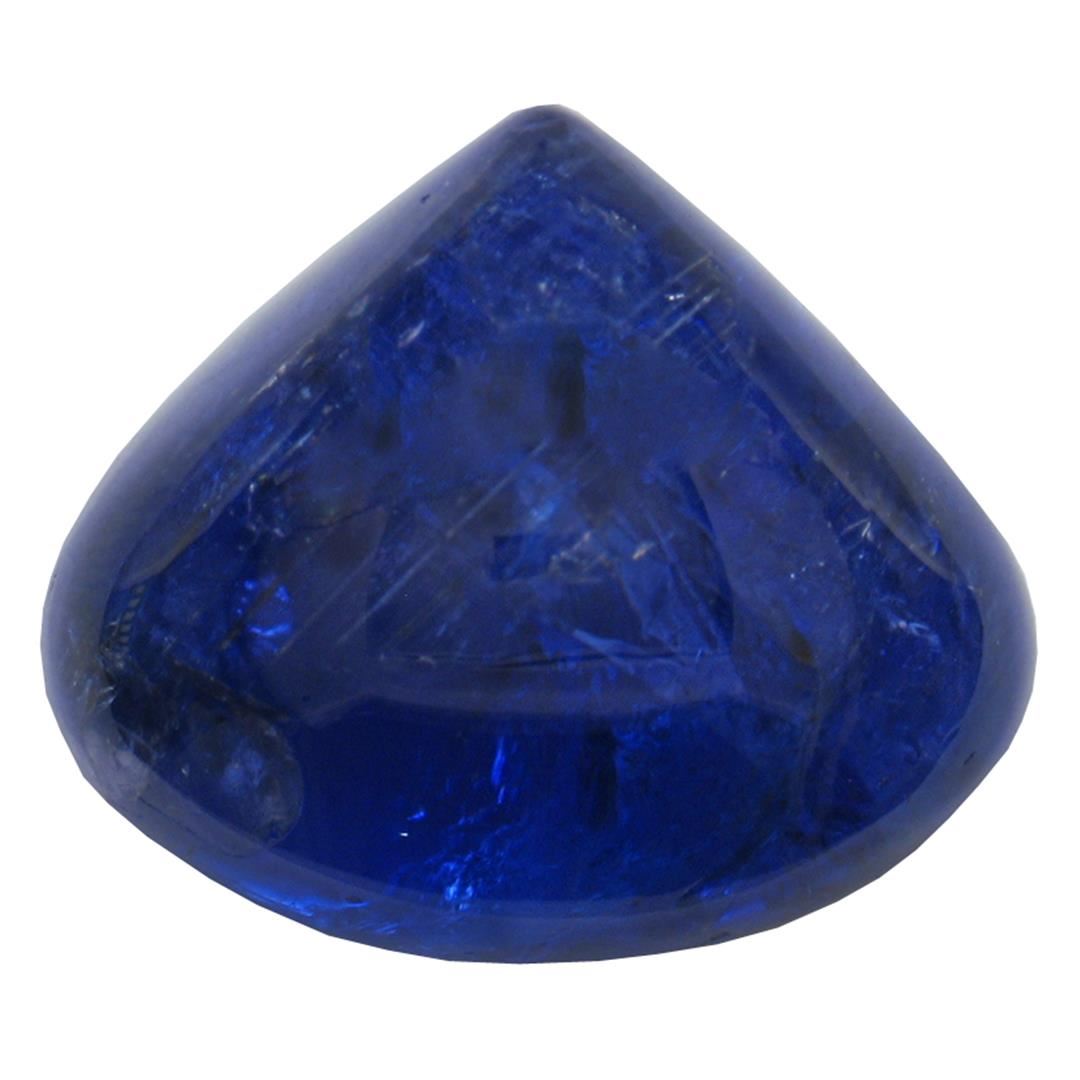 One triangle cabochon cut natural tanzanite, measuring 18.00 x 16.00 x 10.00mm, exact weight 23.25ct., clarity is heavily included, type I, dark, very slightly grayish, blue color, (GIA B 7/3), cut is good. Transmitting light somewhat diffusely, transparent to translucent. Naturally occurring internal & external characteristics are present. Indications of heat treatment. Westfield Appraised at $2,230.00.