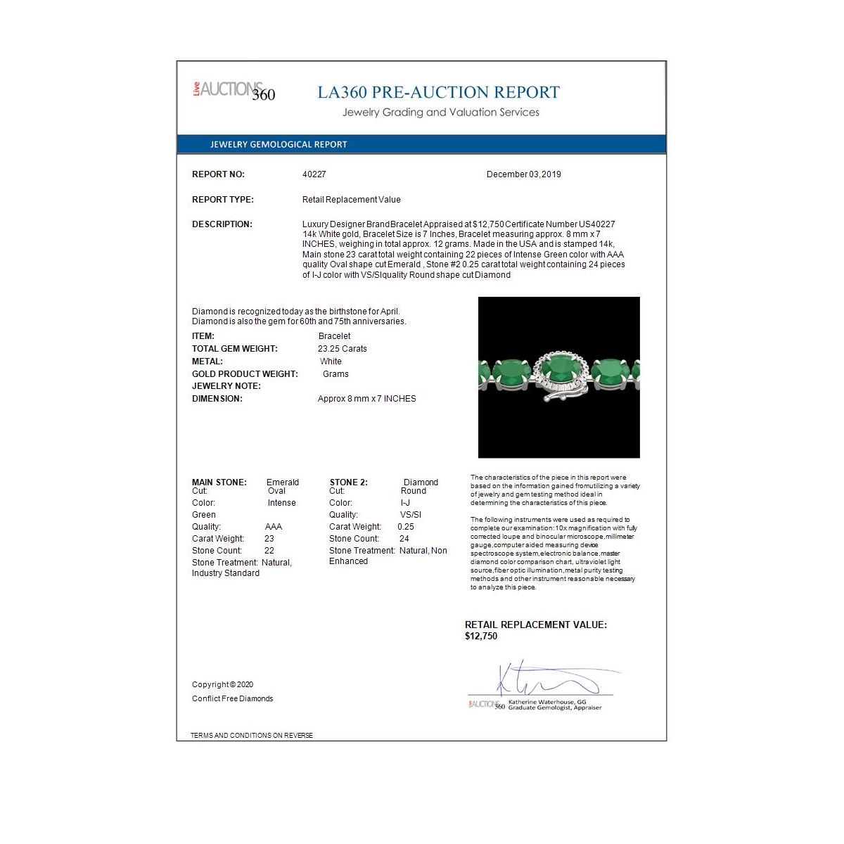 REF-178K2Y - SKU: 40227 ---- 23.25 ctw Emerald & VS/SI Diamond Micro Pave Bracelet 14k White Gold