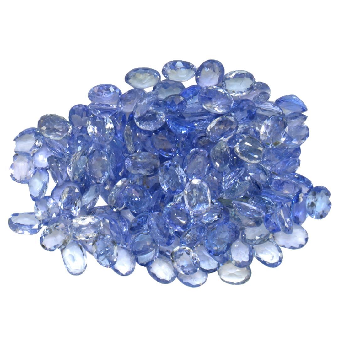 Ninety oval mixed cut natural tanzanites, measuring 4.00 x 3.00 x 1.95mm, exact total weight 23.33ct., clarity is eye clean, type I, medium dark, very slightly grayish, bluish violet color, (GIA bV 6/3), cut is good. Transmitting light with no distortion, transparent. Color grade is an average for the group. Graded in the setting. Tanzanite is a very rare gemstone that is only found in the country of Tanzania. Originally discovered in 1967. Tiffany & Company, named the stone Tanzanite. It is found in the Usumburu Mountains that border the Umba Valley of northern Tanzania. Tanzanite occurs in gray, brown, violet, blue, reddish-purple, & green. The gem is interesting because of its exceptional pleochroism. Rotated in different directions a tanzanite will exhibit multiple changes of color. Tanzanite has a low tolerance to ultrasonic cleaning, and should not be cleaned using this method. Westfield Appraised at $2,245.00.