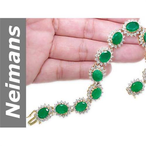 </tr></table><table border=0 width=100% cellspacing=0 cellpadding=10><tr><td valign=top style='background-repeat: no-repeat; font-family: Verdana; font-size: 8pt'><b><!-- ///START/// INSERT JEWELRY SPECIFIC DATA --><font size=5>Graduate Gemologist Certified 23.4 Carat Emerald & Diamond Bracelet elegantly set in solid 14kt gold!!</font><font size=5>