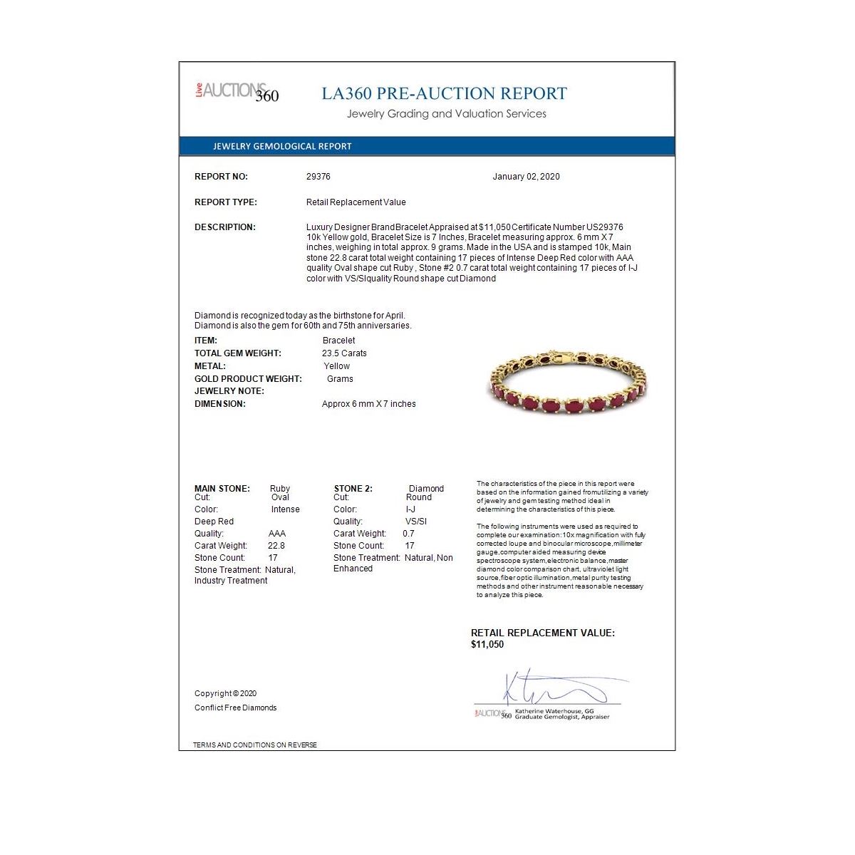 REF-143A6N - SKU: 29376 ---- 23.5 ctw Ruby & VS/SI Certified Diamond Eternity Bracelet 10k Yellow Gold