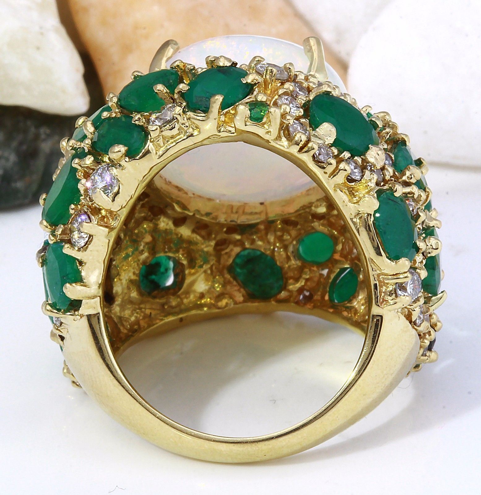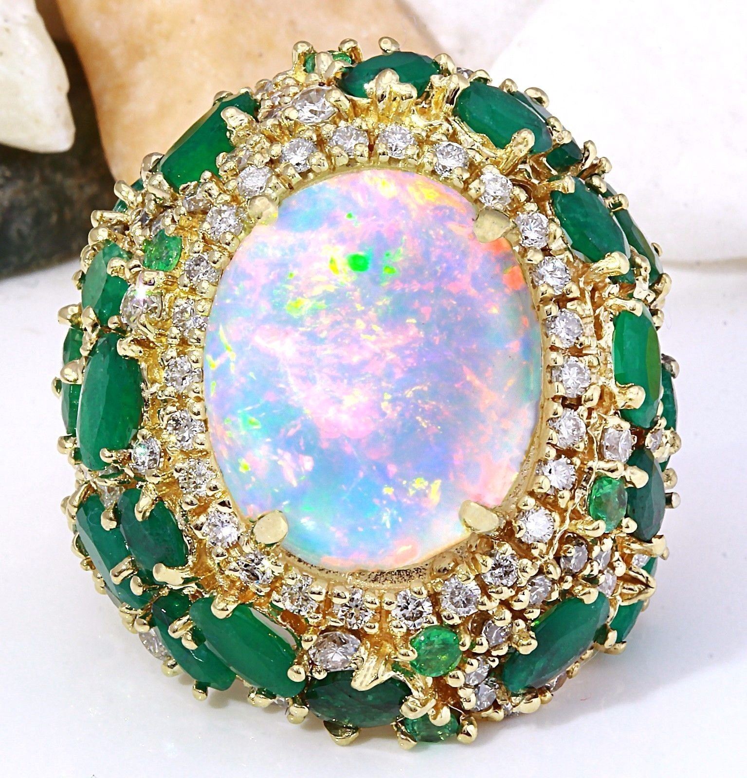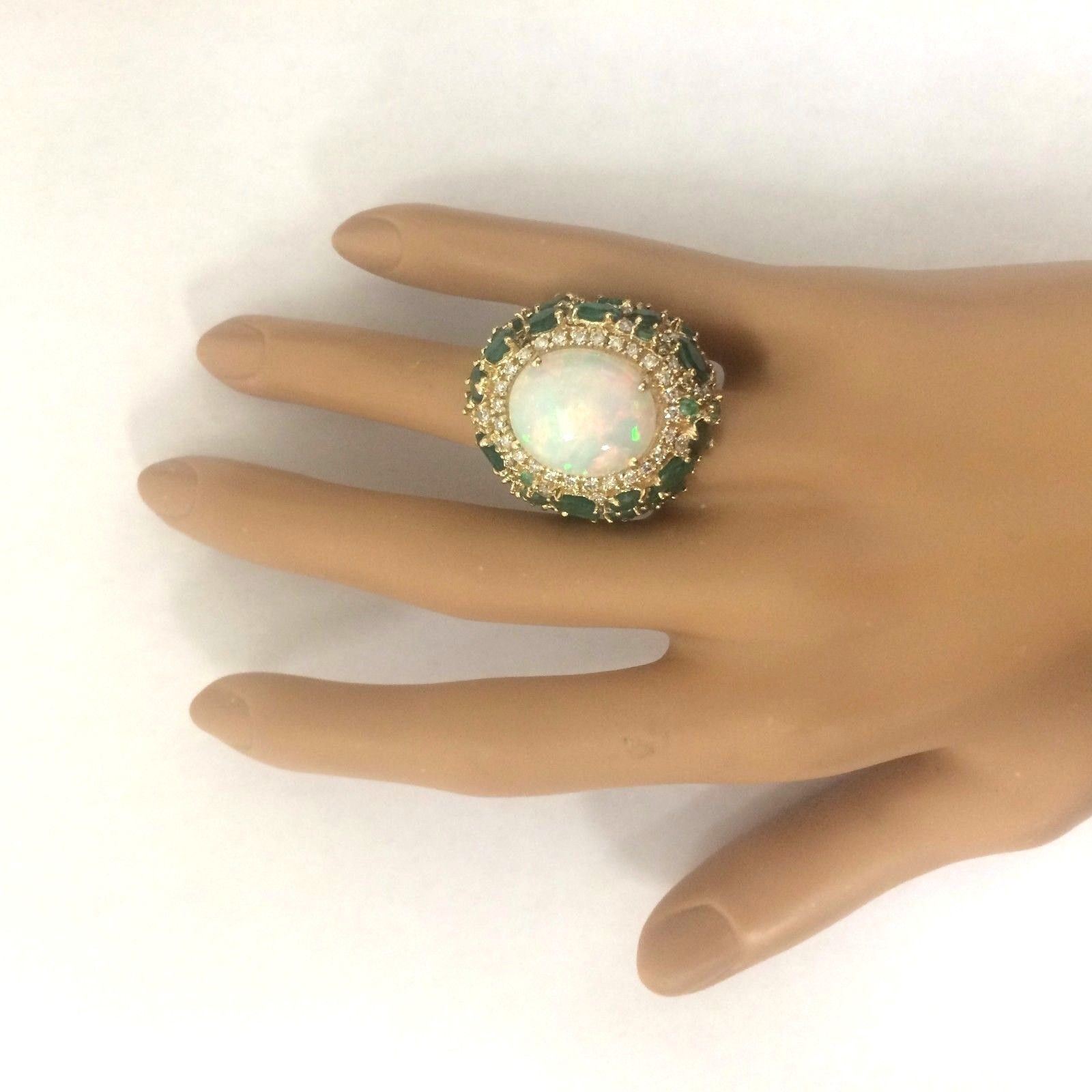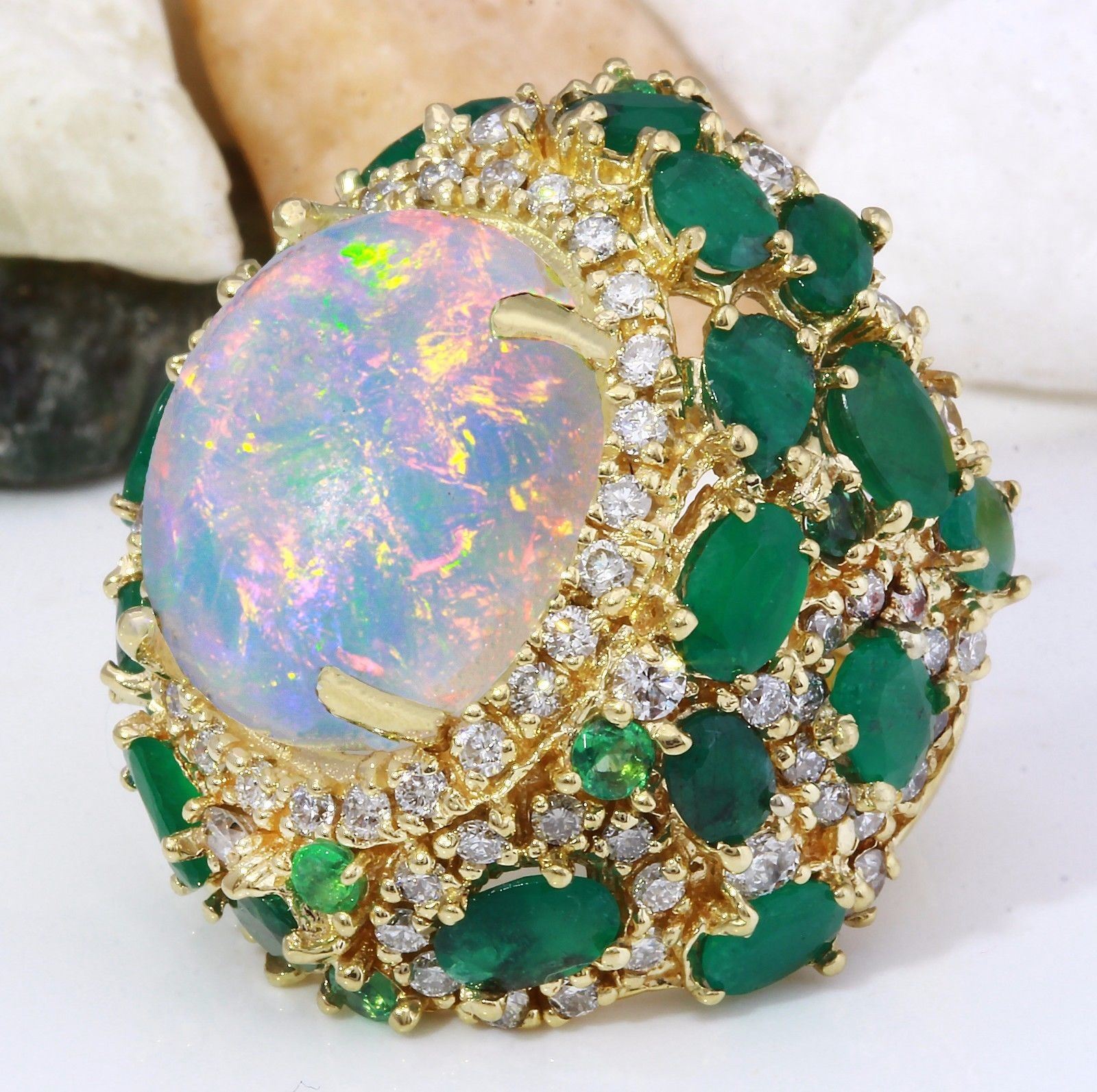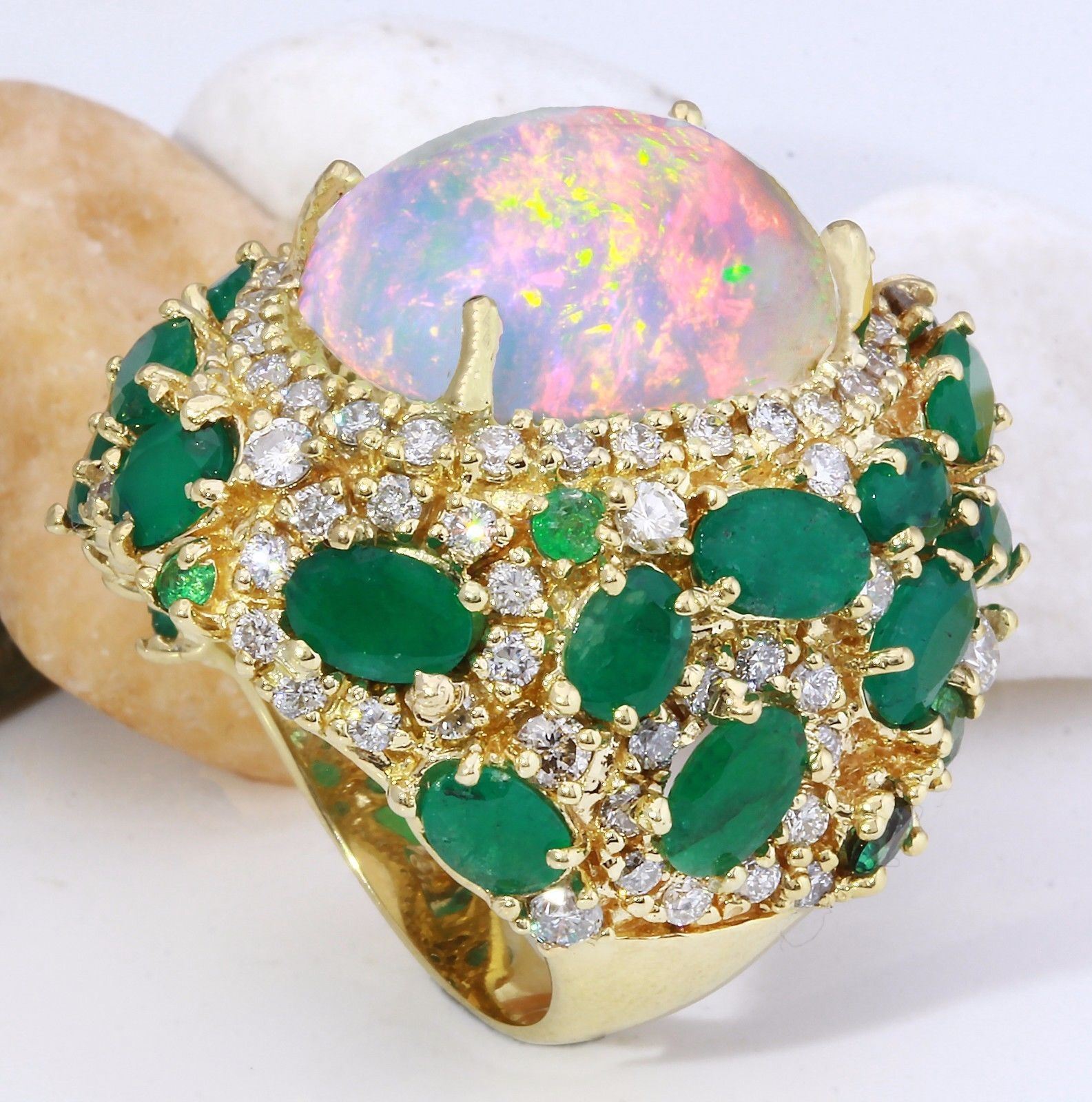 23.55 CTW Natural Opal, Emerald 18K Solid Yellow Gold Diamond Ring
